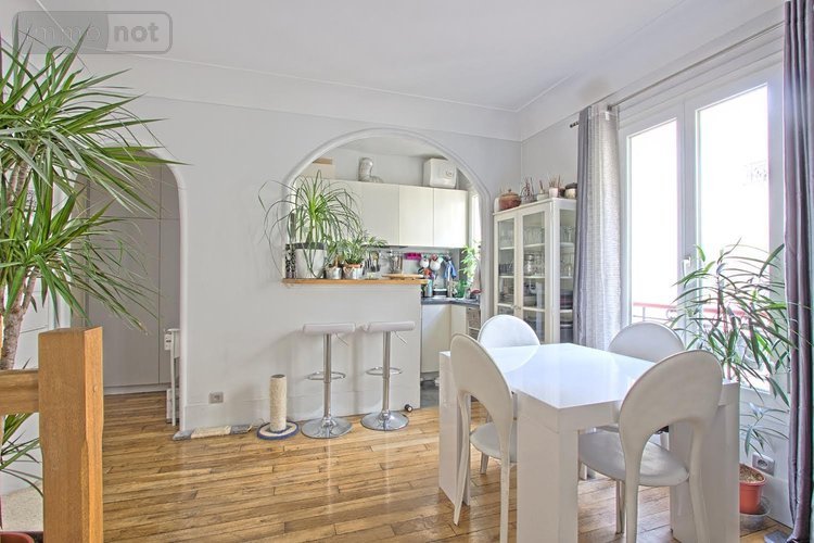Appartement à vendre à PARIS 11e arrondissement (75), PERE-LACHAISE : un très bel appartement duplex T4 d'environ 58,62m², en très bon état, au 1er et 2ème étage d'une copropriété de 1890 située dans un environnement calme et à proximité des commerces du quartier et du métro, comprenant : à l'étage supérieur (2 niveau, accès principal), espace d'entrée doté d'un grand placard et de rangements intégrés, cuisine ouverte, équipée, dotée d'un bar qui s'ouvre sur un vaste double salon-séjour ; à l'étage inférieur (1er niveau) : salle de bains, w.c., espace buanderie, une chambre, une deuxième chambre en enfilade, très lumineuse, avec espace de rangement à aménager. Deux caves réunies. Espace de rangement niveau 1. WEB:www.goasguen.notaires.fr