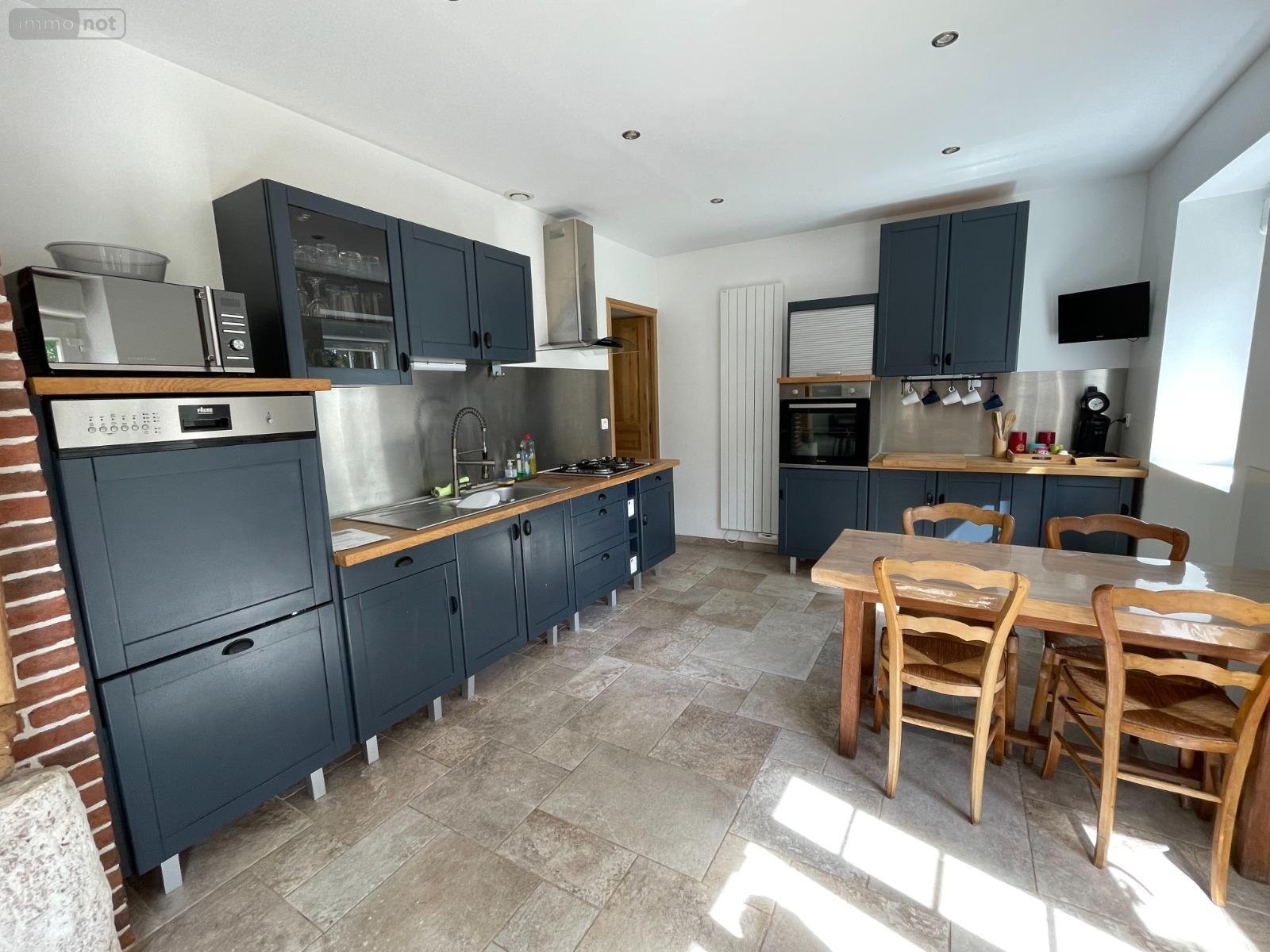 Au rez-de-chaussée : entrée, une cuisine aménagée et équipée, une arrière cuisine, un séjour-salon avec poêle à bois, une salle d'eau, un WC