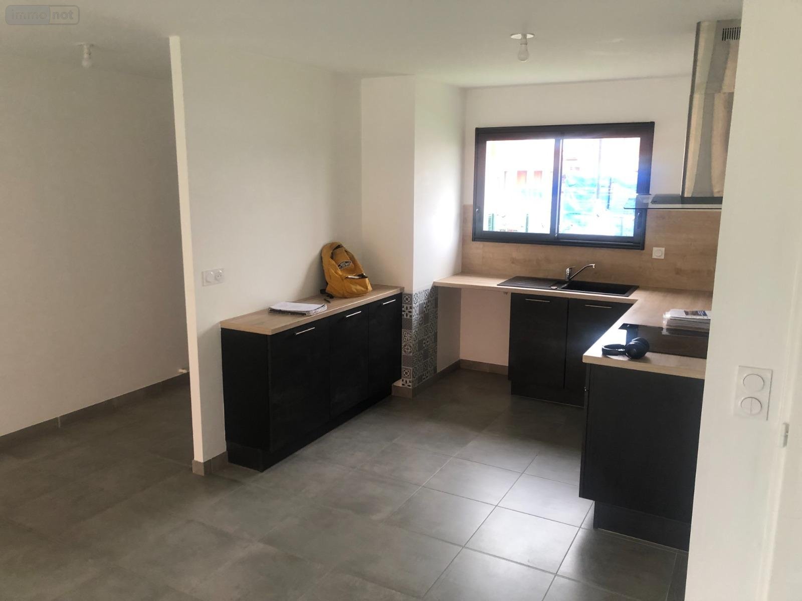 - une entrée, un salon-séjour avec cuisine ouverte, une salle d'eau avec WC et trois chambres.