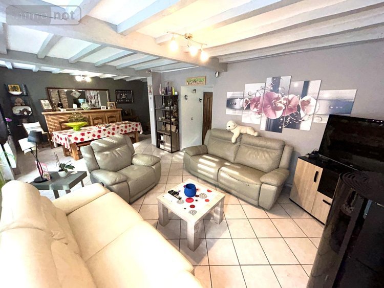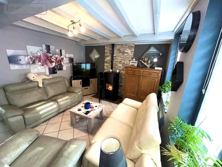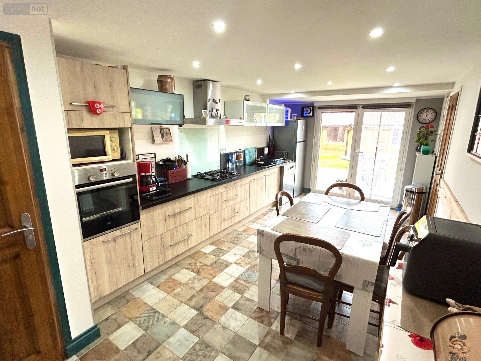 Maison qui se compose d'un espace de vie (salon-séjour) de 36m² avec feu à granulés, d'une belle cuisine (oscab) de 20m², un cellier, wc et d'une salle de bain de 13m² (double vasque-douche-baignoire).