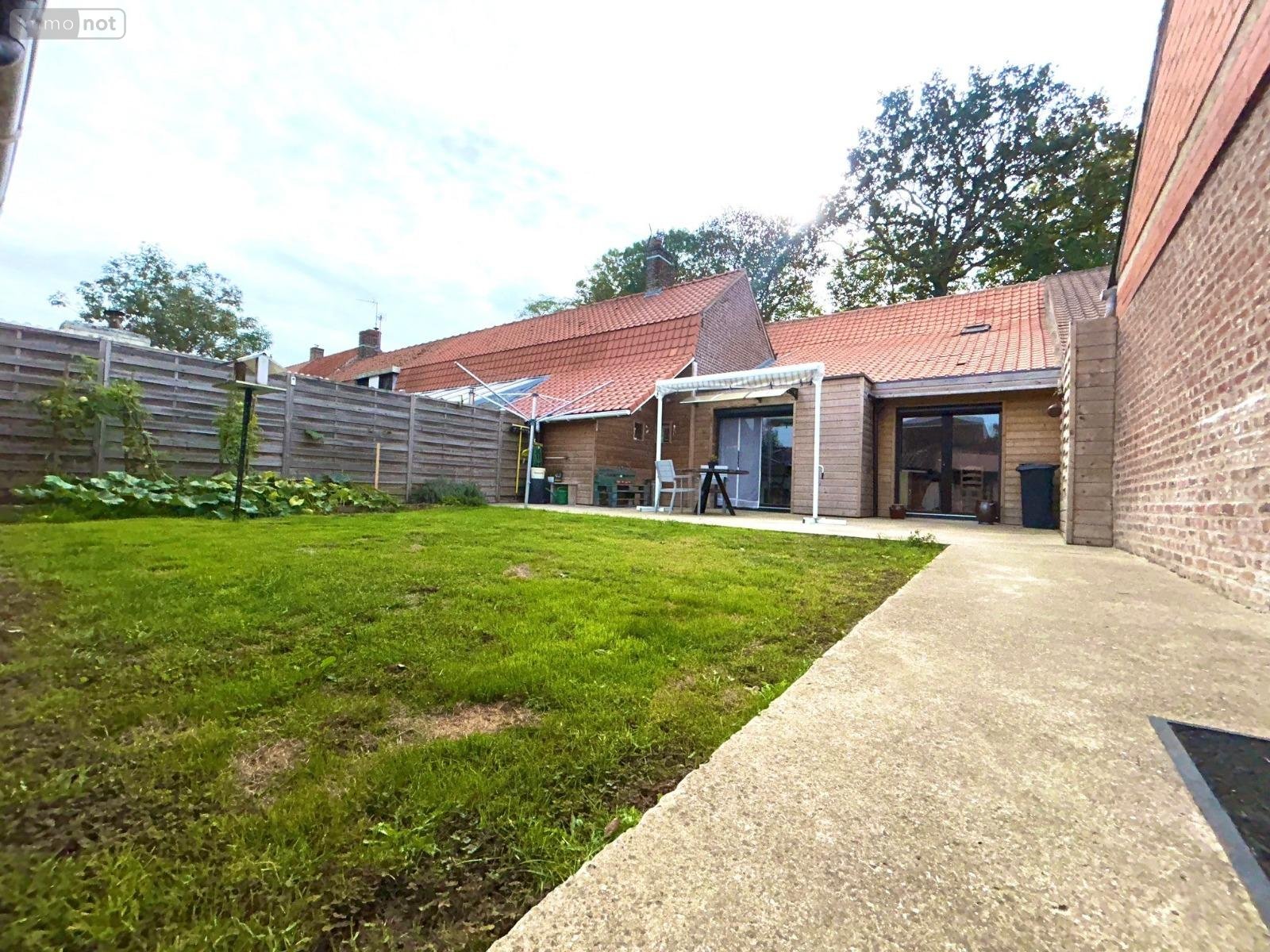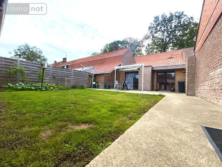 Maison mitoyenne à Noordpeene d'une surface de 110m² sur une parcelle de 261m² avec double garage et atelier (38m²)! Maison entièrement rénovée, jardin au calme.