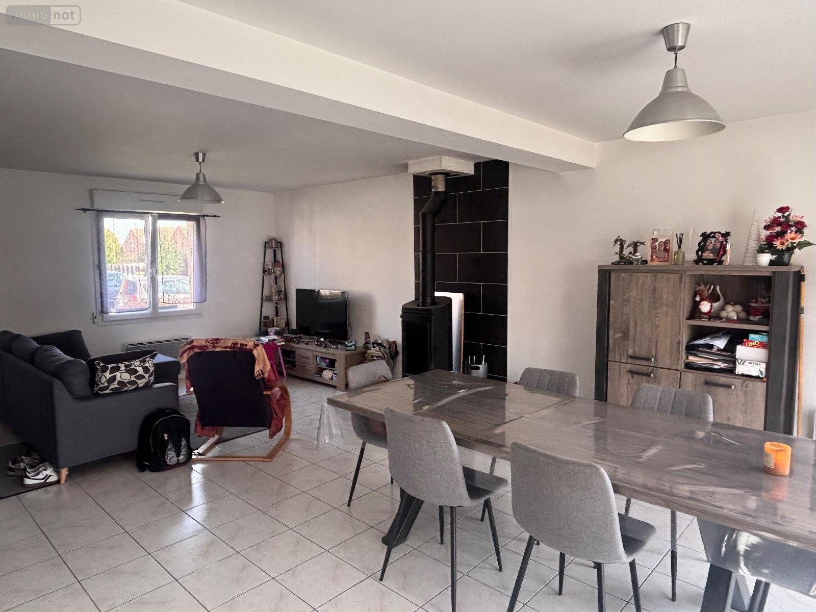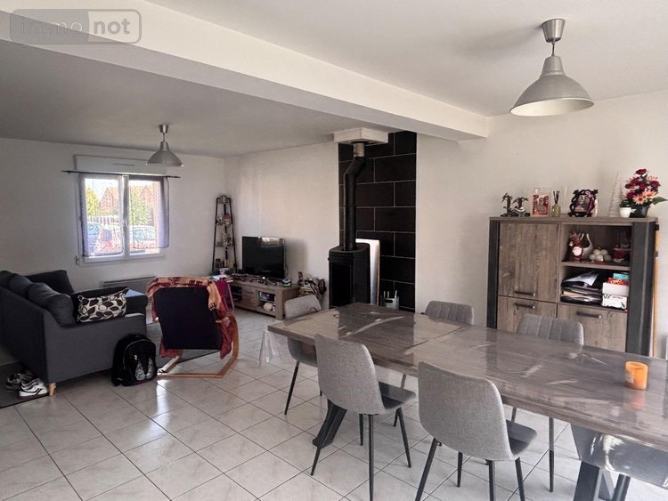 Au rez-de-chaussée, vous découvrirez une entrée donnant sur un bel espace de vie lumineux composé d'un salon/séjour avec poêle à bois et d'une cuisine ouverte, fonctionnant au gaz en bouteille.