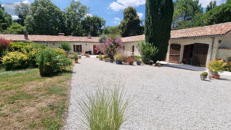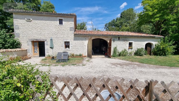 Moulin à eau avec droit d'eau et gîte dans cadre de verdure exceptionnel, à vendre secteur de Barbezieux-Saint-Hilaire en Charente (16), habitation principale de plain-pied sur : 263 m² comprenant double séjour avec cheminée, cuisine aménagée dans la tour, 3 chambres dont 2 suites, gîte de : 64 m², mécanisme du moulin en place. Vaste dépendance. Parc arboré au calme, fruitiers et truffiers sur plus de 2 hectares.