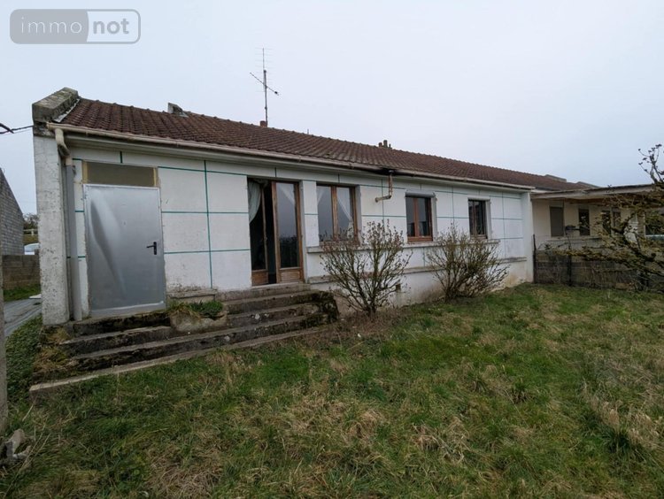 Des travaux seront à prévoir pour ce pavillon de plain-pied mitoyen d'un côté d'une surface de 80m² comprenant entrée, cuisine, séjour de 24m², dégagement trois chambres, salle d'eau et WC. Combles perdus. Garage 1VL. Huisseries en bois et survitrage. Chauffage: poêle à pellets. TF: 325€.