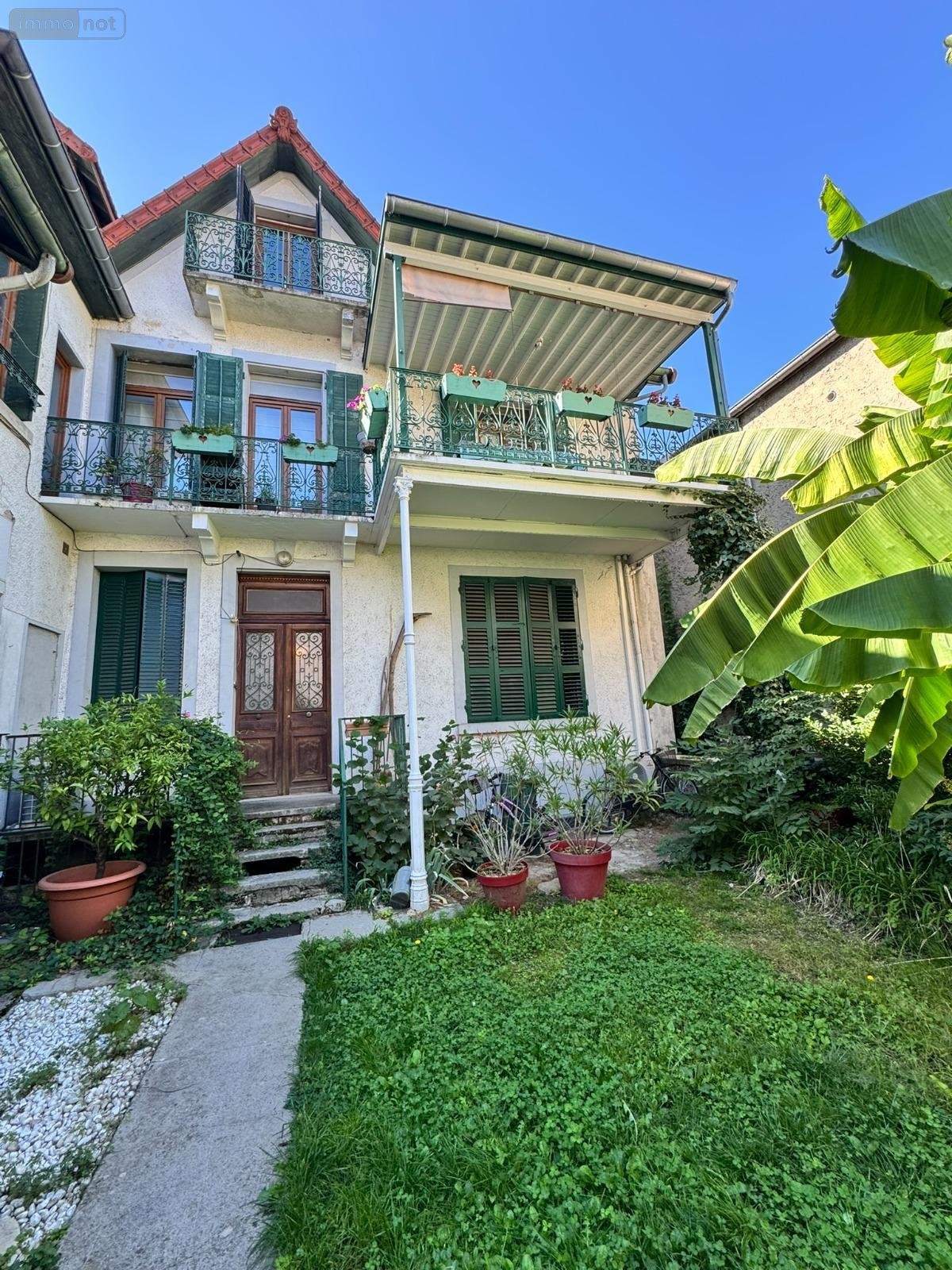 Rare opportunité. Appartement à vendre Aix-les-Bains en Savoie (73), bel appartement de charme au dernier étage d'une maison typique de la belle époque, d'une surface carrez de 82,02 m2, avec 105 m2 disponibles au sol, comprenant 2 belles chambres, une grande pièce de vie, un bureau, 2 salles de bains contemporaines et WC, le tout agrémenté d'un accès au jardin commun arrière de la maison et d'une cave. Copropriété extrêmement calme et charmante (ambiance maison de famille). Deux balcons avec vue exceptionnelle sur le Revard et la Dent du Chat. Bien que situé au plein cœur de la ville, proche de toutes les commodités à 150 m de la rue de Chambéry, ce bien est en retrait du bruit, dans une rue très calme. Le beau jardin donne une sensation de vie à la campagne.