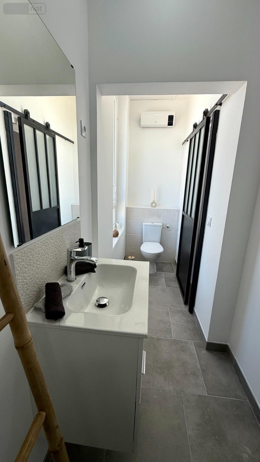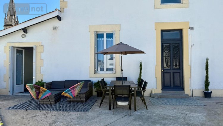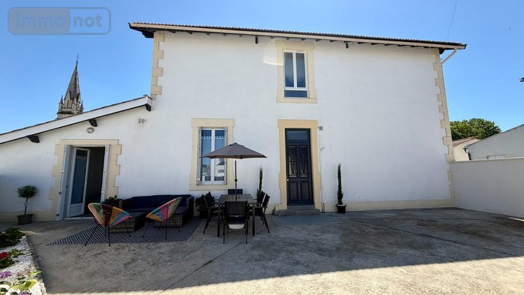 Jolie maison ancienne à vendre à LA TREMBLADE en Charente-Maritime (17), en plein centre-ville, à proximité immédiate des commerces, sur 2 niveaux rénovée avec goût et de qualité comprenant : hall d'entrée avec départ d'escalier, belle cuisine aménagée et équipée ouverte sur séjour, beau salon avec cheminée en pierres, une chambre avec salle d'eau-w.c. privative. A l'étage : un palier-dégagement desservant 2 grandes chambres dont une avec partie dressing, une salle d'eau-w.c. Vaste cour d'agrément close avec parking voitures.