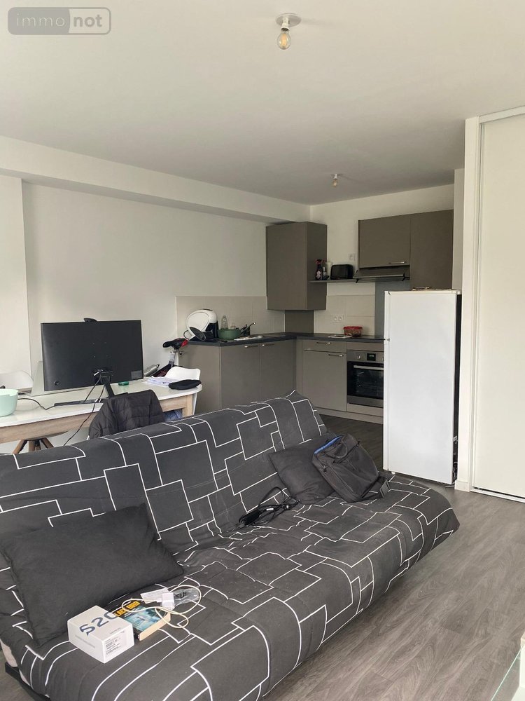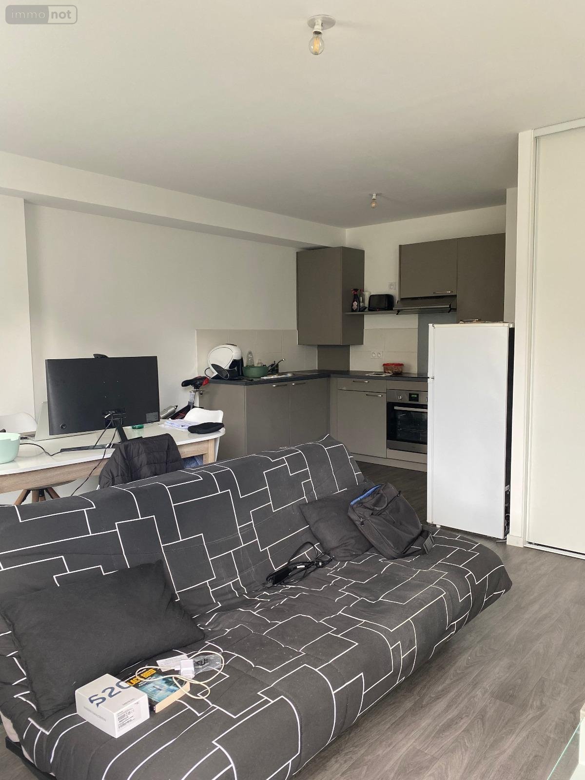 Dans une résidence récente, appartement T2 situé au 1er étage, il comprend : un dégagement, une pièce de vie avec un balcon, une cuisine ouverte, une chambre avec placard intégré, une salle d'eau, un WC.