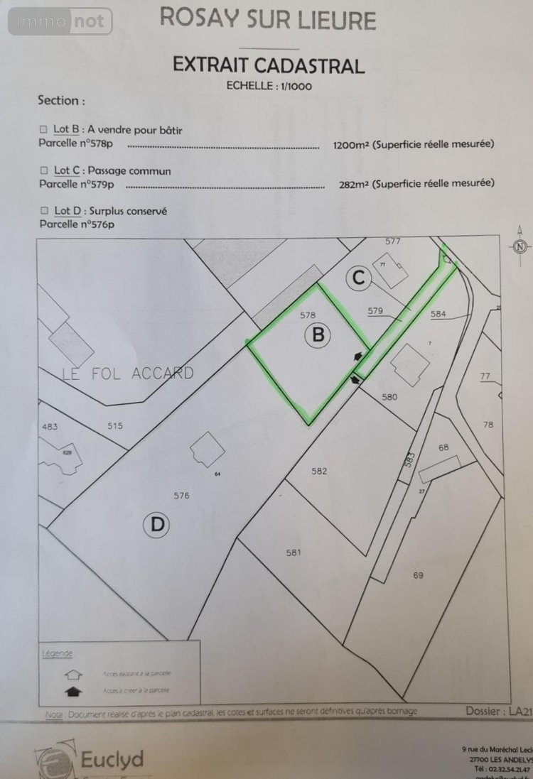 Terrain à bâtir plat à vendre sur Rosay-sur-Lieure dans l'Eure (27).