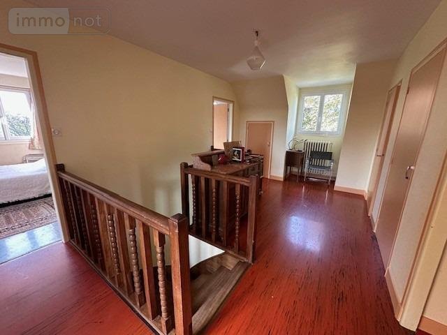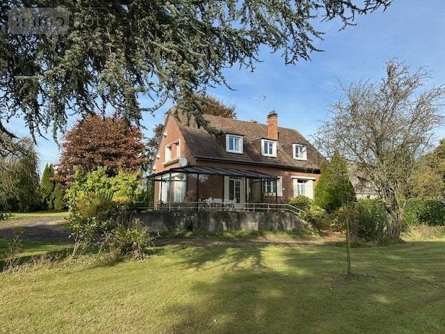 Maison à vendre à Callengeville en Seine-Maritime (76), comprenant : au sous-sol : chaufferie, garage, buanderie, grande pièce. Au rez-de-chaussée : entrée, W.C., cuisine, séjour/salon avec cheminée, couloir de distribution, deux chambres, salle de douche. Véranda. A l'étage : grand palier, cinq chambres, W.C., salle de douche. Chauffage central au fuel. Double vitrage. Tout-à-l'égout. Bâtiment à usage de garages. Jardin arboré. Le tout sur un terrain de 3330m².