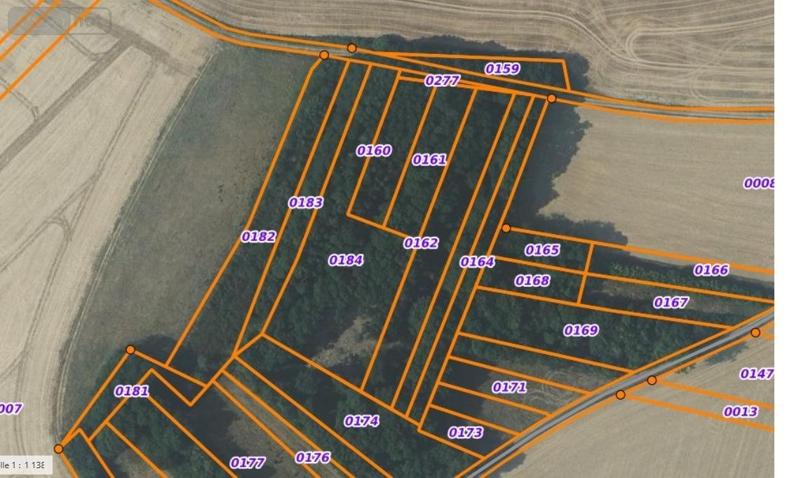 Une parcelle de bois avec accès direct à la route, parcelle n° 184 sur le plan.