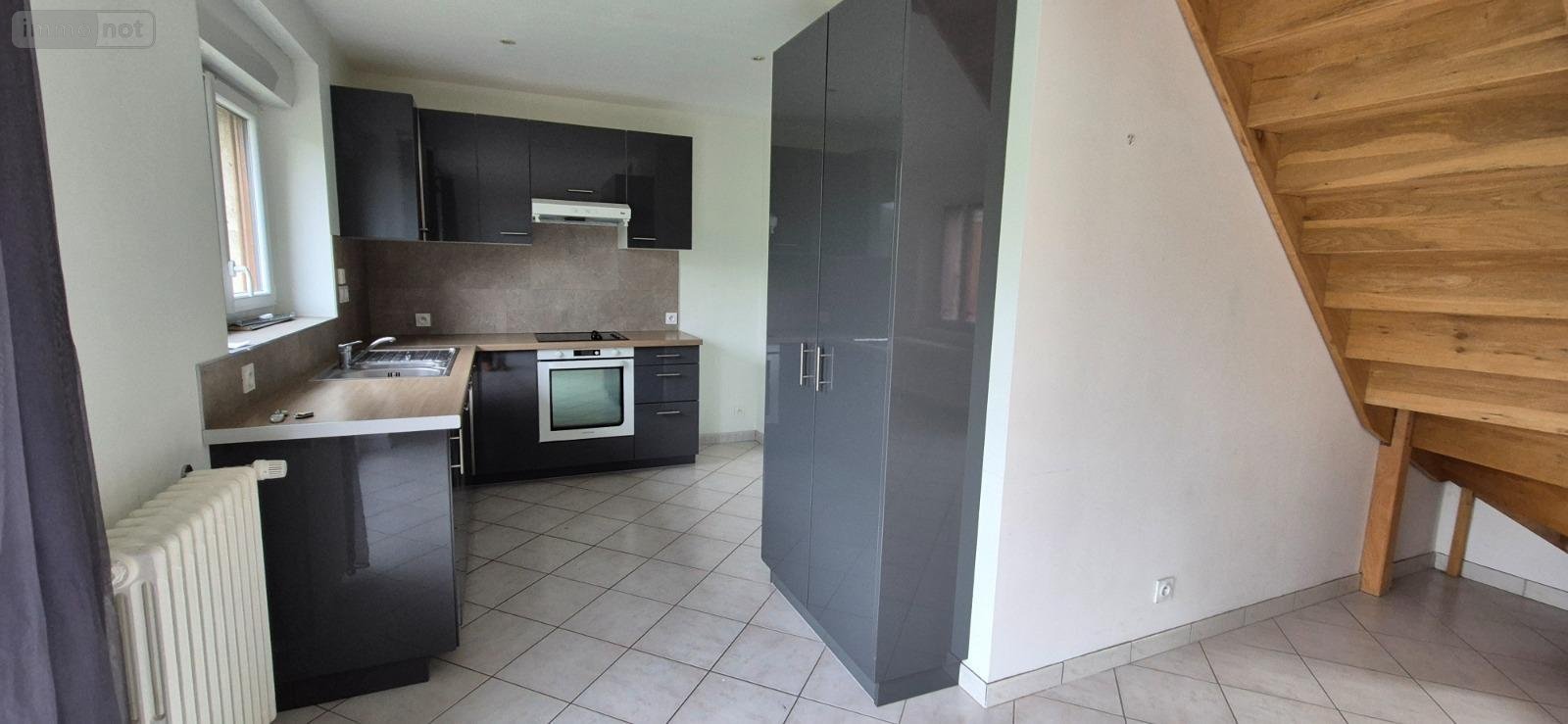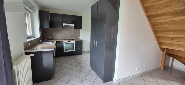 Maison individuelle à vendre à La-Ferté-Bernard dans la Sarthe (72) comprenant : séjour 27,5 m² ouvert sur cuisine aménagée et équipée 7m², salle d'eau 5.5m², WC indépendants, grande chambre 30m², buanderie 8.5m². A l'étage : palier, deux chambres avec placards 9m² (surface carrez).
