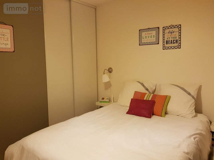 Entrée, séjour avec cuisine ouverte aménagée et équipée (hotte, four, plaque, lave-vaisselle et réfrigérateur), chambre avec placard, salle de douche avec WC.