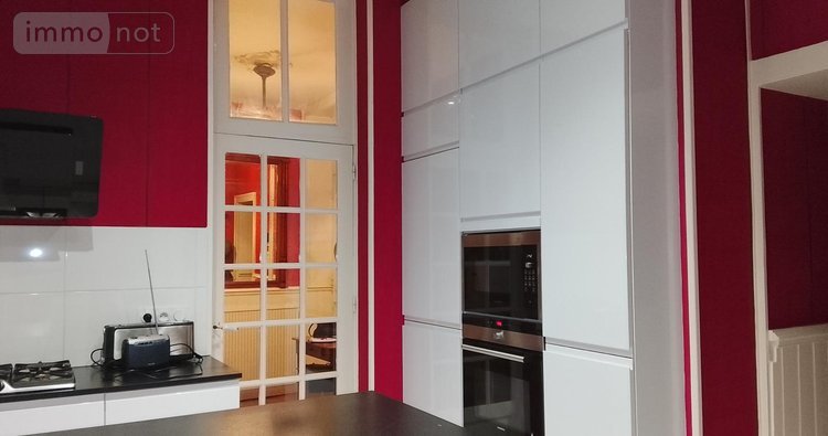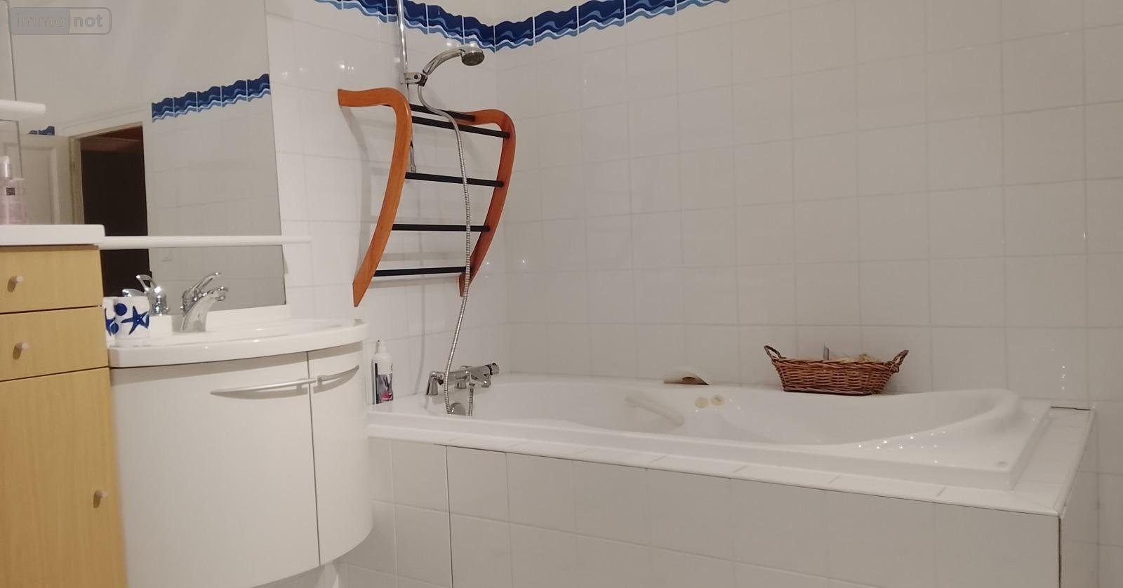 Maison de ville (1930) à vendre, comprenant au RDC surélevé, une entrée desservant une cuisine aménagée et équipée, un salon d'origine. Une extension à l'arrière de la maison comprend une salle à manger, un salon et à la suite une grande buanderie lumineuse (avec penderie de chaque côté) communiquant avec un garage et une cave sous terre battue. Au 1er étage, une chambre et une grande salle de bains avec douche et baignoire bal-néo. Au 2è, 3 chambres avec placard (1ère) en enfilade, un accès au grenier. A l'arrière de la maison, ne terrasse, jardin, abri de jardin. A l'avant, jardin d'agrément avec portail à commande visuel. Droit de passage existant en limite séparative.