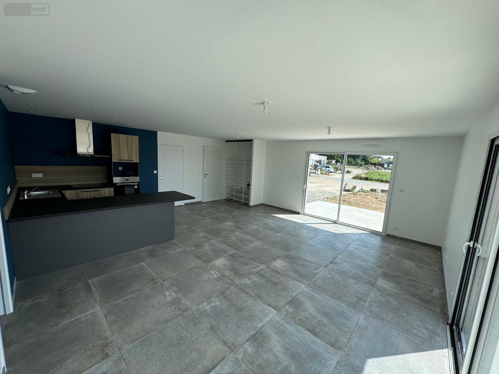 Une maison de plain pied de 88 m², comprenant une cuisine ouverte sur salle à manger et salon de 43 m², 3 chambres dont 2 avec penderies, une salle de bain avec douche et meuble vasque, WC indépendant.