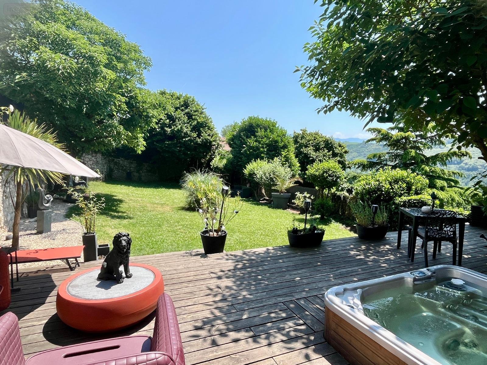 Magnifique propriété en pierres située sur les hauteurs de Saint-Genix-les-Villages, comprenant une habitation principale de 220 m² habitables composée de deux logements indépendant mais entièrement communiquant par l'intérieur, des combles aménageables de 94 m², d'une grange de 230 m², et de plusieurs parcelles de terrain constructible.
