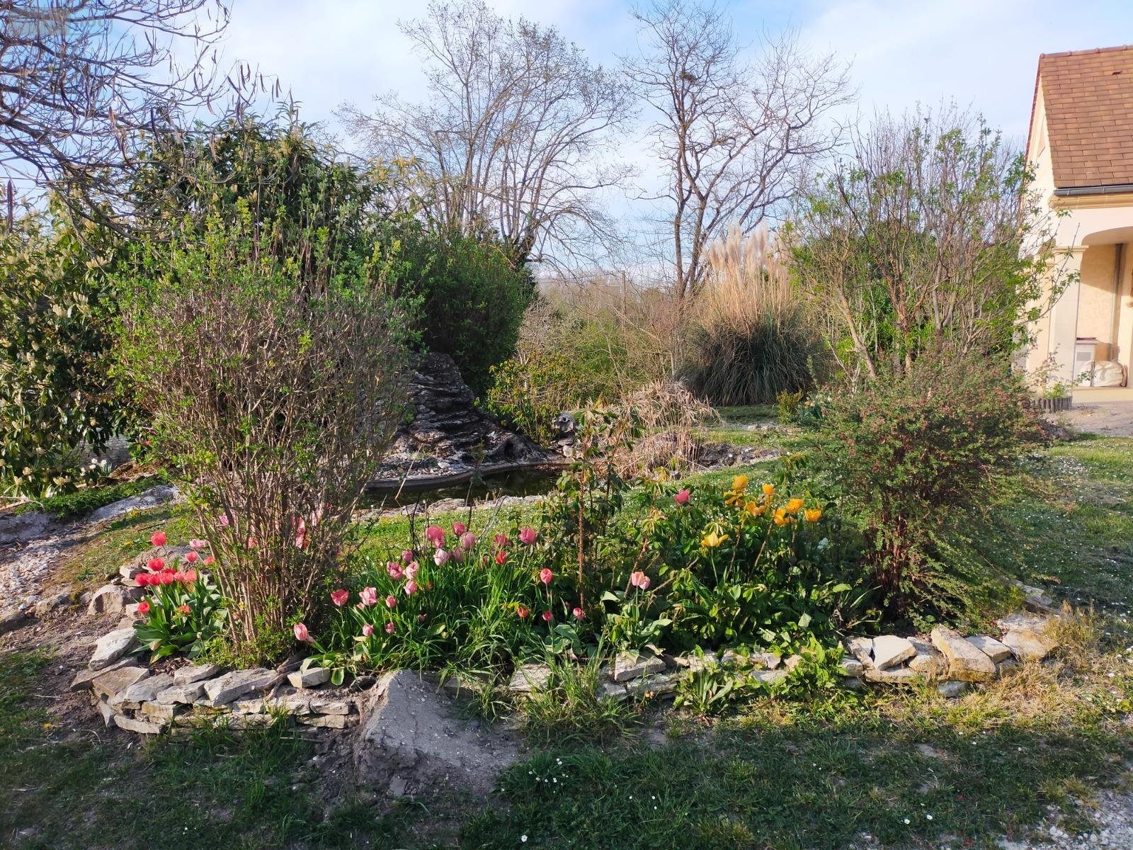 Jardin arboré avec bassin et puits. DPE en cours.