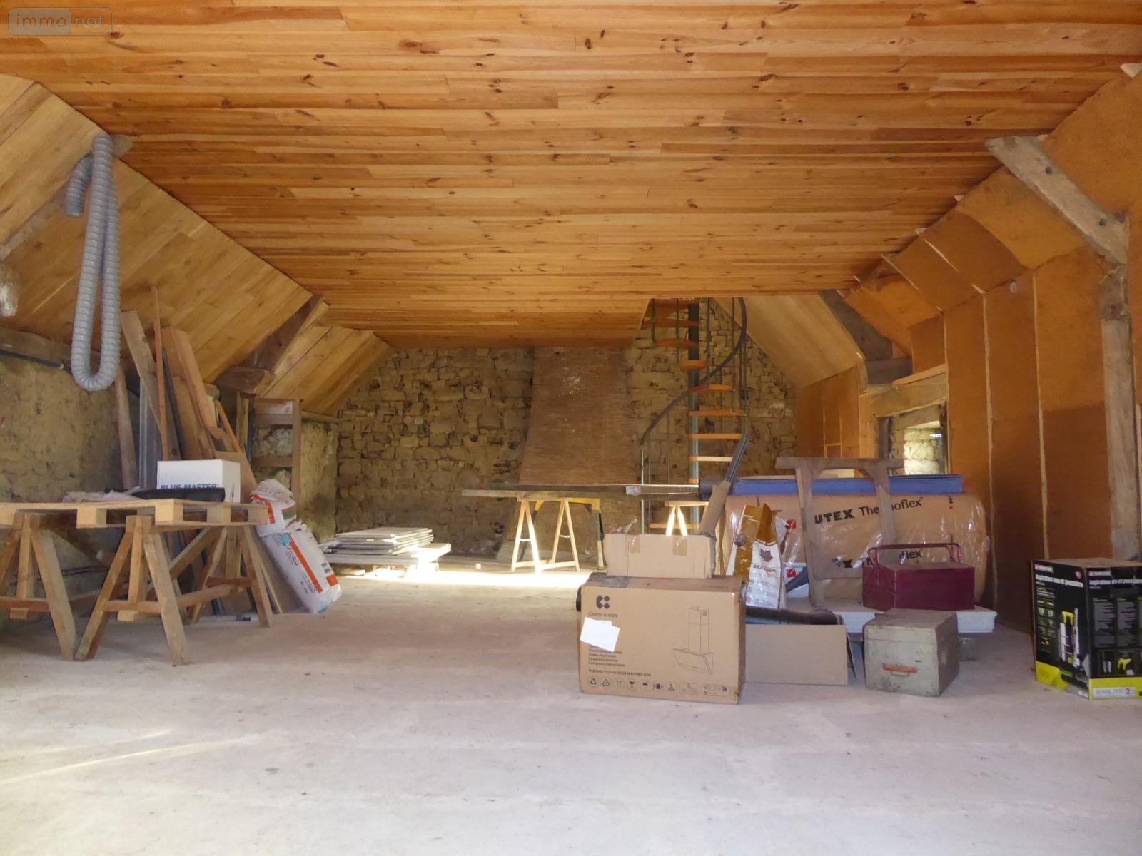 Une maison d'habitation en cours de rénovation, construite en pierres et couverte en ardoises, comprenant :