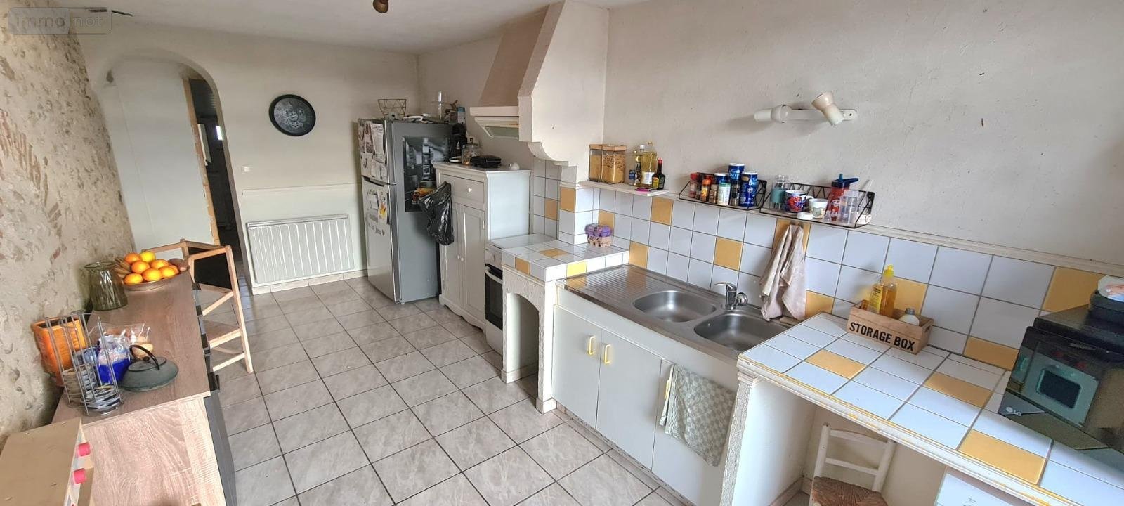 Cuisine, salle de bains, W.C., débarras, cave, séjour, deux chambres.