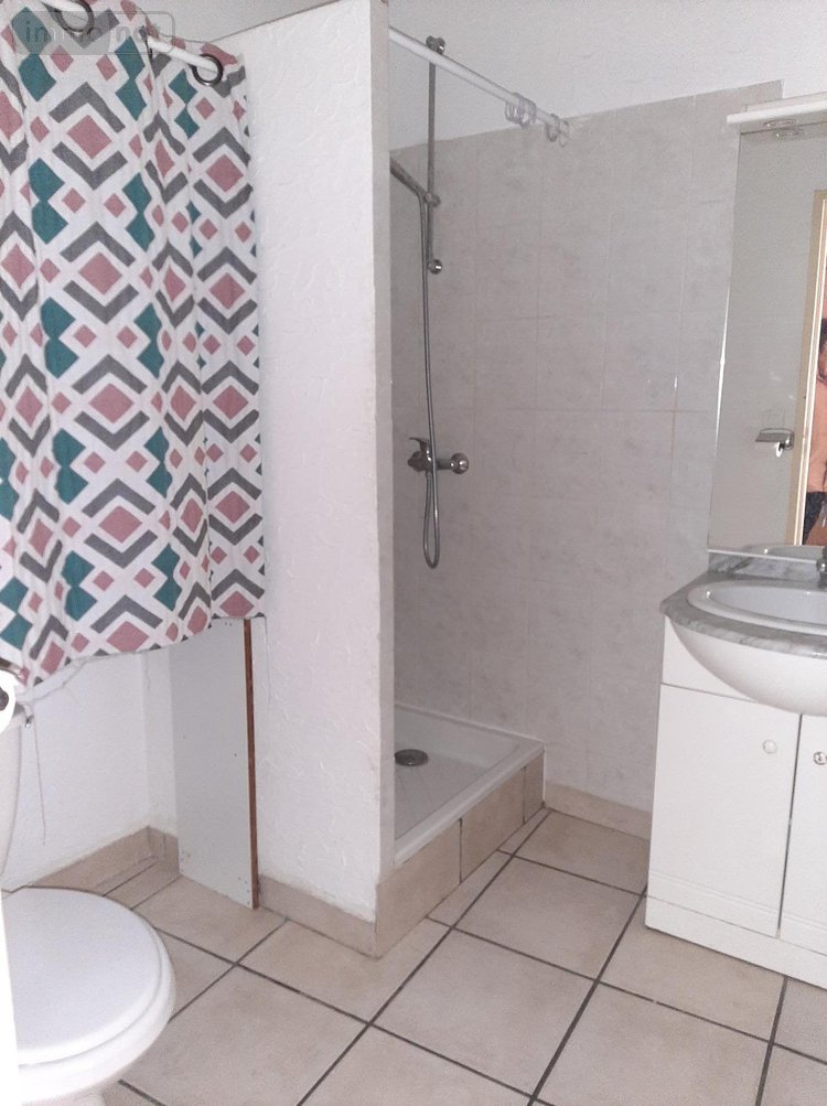 Au centre ville de POLLIONNAY, un studio composé de : Entrée, kitchenette, pièce à vivre /chambre, salle d'eau avec WC.