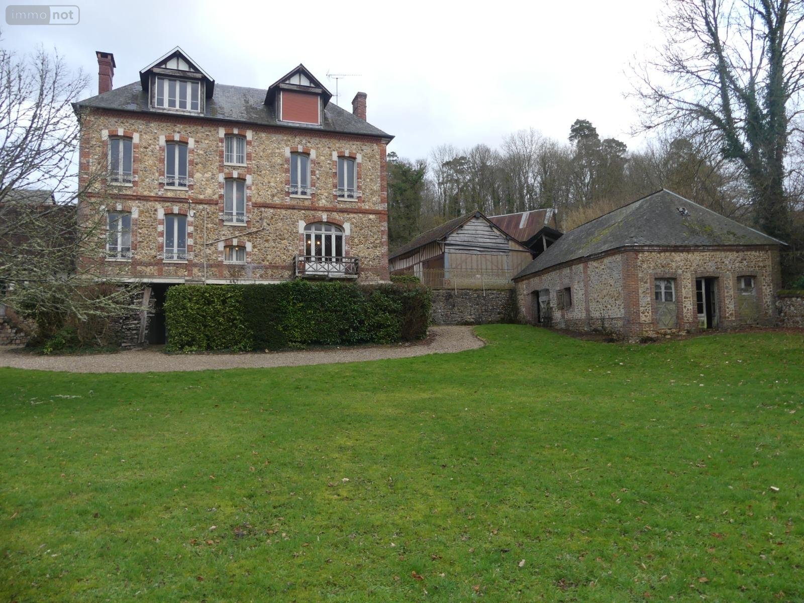 Belle propriété en bordure de rivière avec ses dépendances édifiée sur un terrain de 4964 m², comprenant : entrée, salle à manger avec cheminée, salon avec cheminée,bureau, coin cuisine avec coin repas. A l'étage : palier desservant 4 chambres, salle d'eau et wc. Au 2ème étage : 3 chambres et grenier.Parquet-Chauffage central au fuel. Petite maison de 3 pièces attenante à restaurer. Dépendance à usage de garages et remise. Caves.Pressoir. Travaux à prévoir.