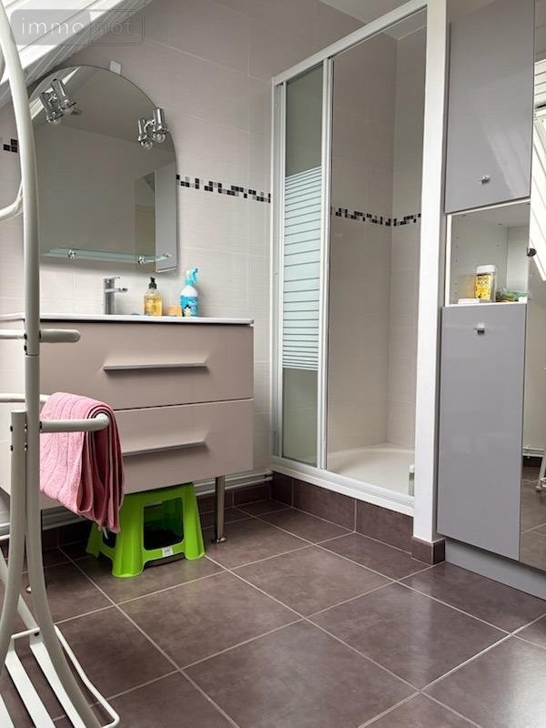 A l'étage 2 chambres, bureau (inf. à 9m²), salle d'eau, wc.
