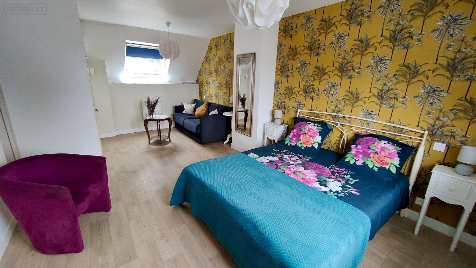 Au premier étage : palier desservant une chambre, une suite avec kitchenette, salle de bain et WC.