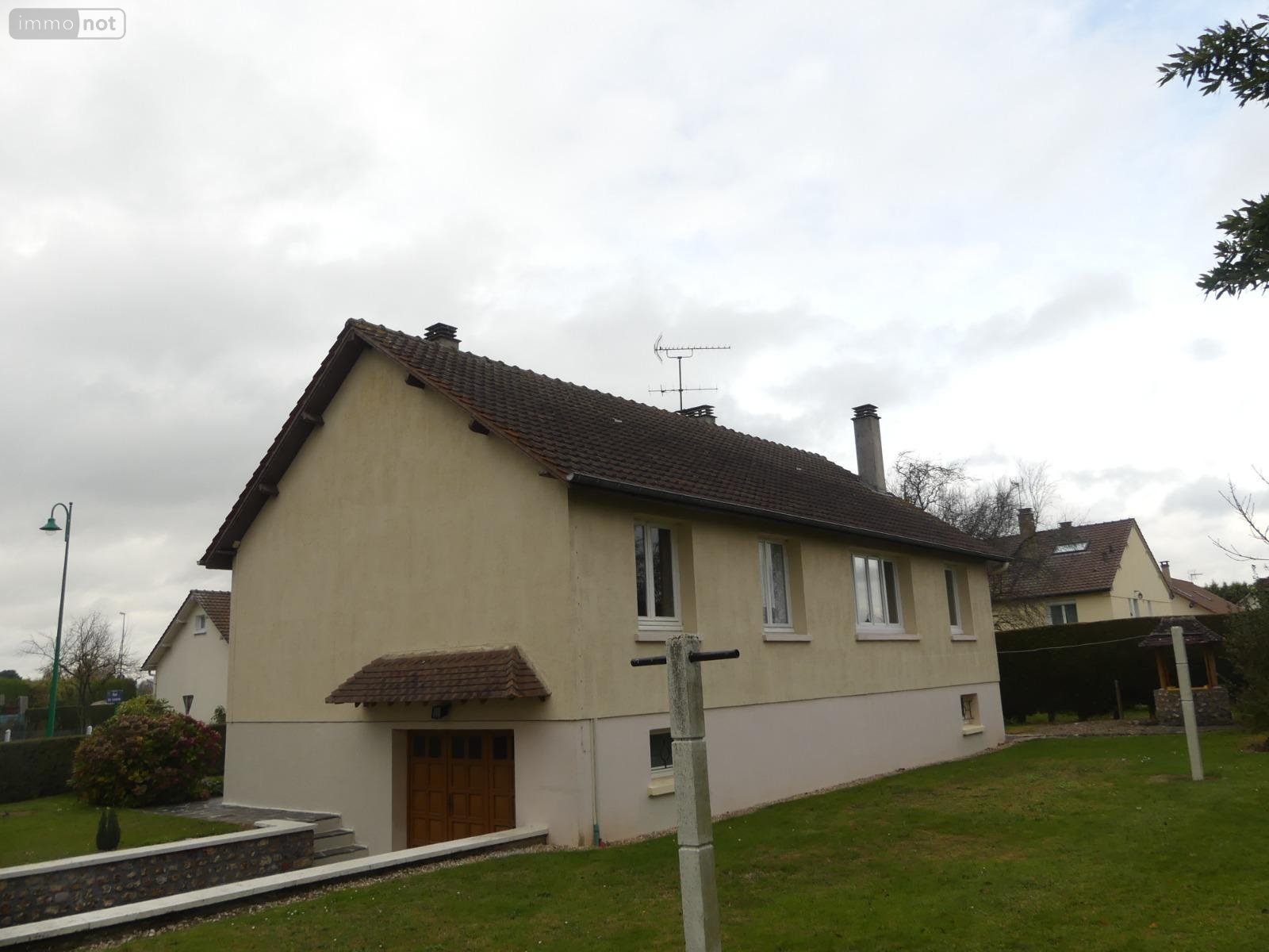 Pavillon sur sous-sol complet comprenant : entrée, cuisine aménagée et équipée (four, plaques, hotte), séjour avec terrasse en bois, 3 chambres, salle d'eau.