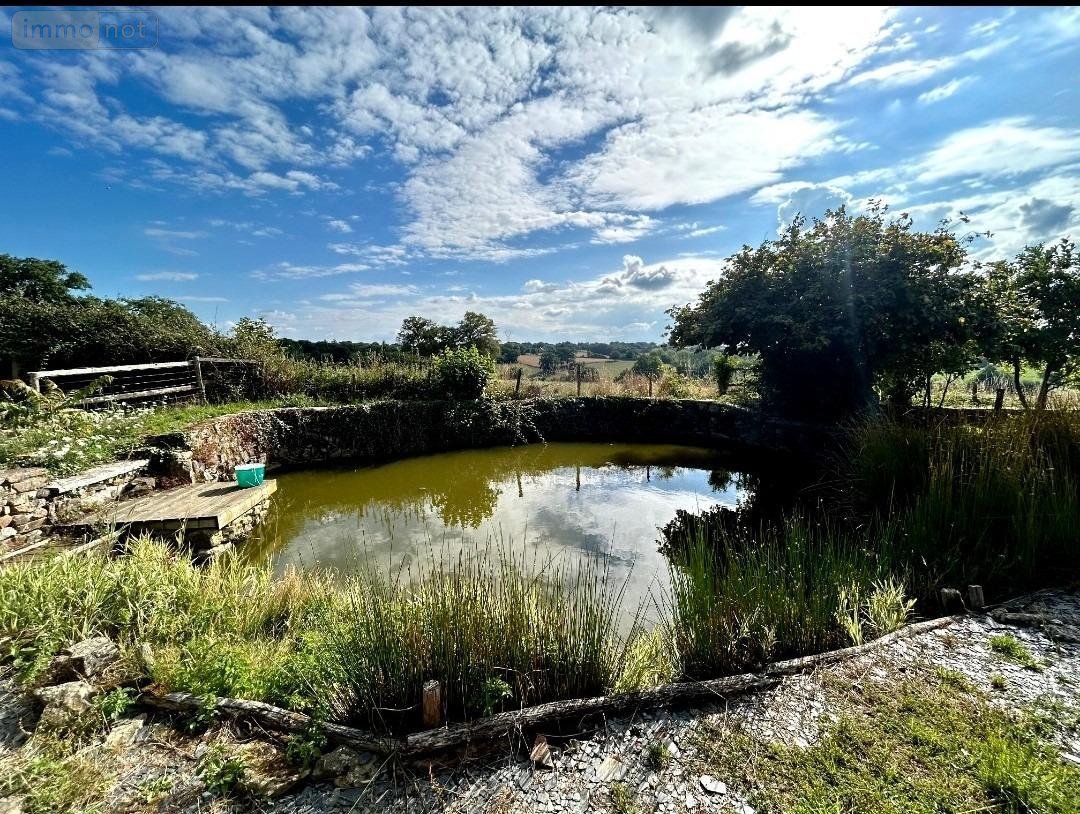 Terrain de 2762m² avec une mare, pergola, dépendance en pierres à usage de stockage.