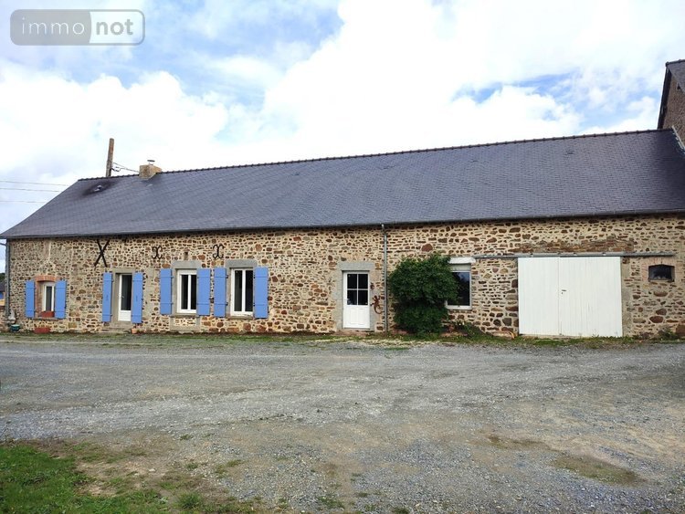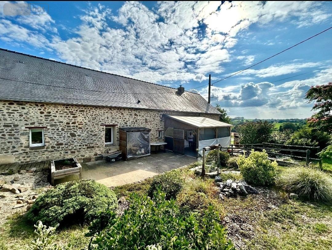 EN EXCLUSIVITÉ, à Andouillé, maison en pierres comprenant de plain-pied : entrée sur salon/séjour et poêle à bois, cuisine ouverte aménagée équipée, dégagement, une chambre parentale avec salle d'eau, deux chambres, salle de bains, WC, garage.