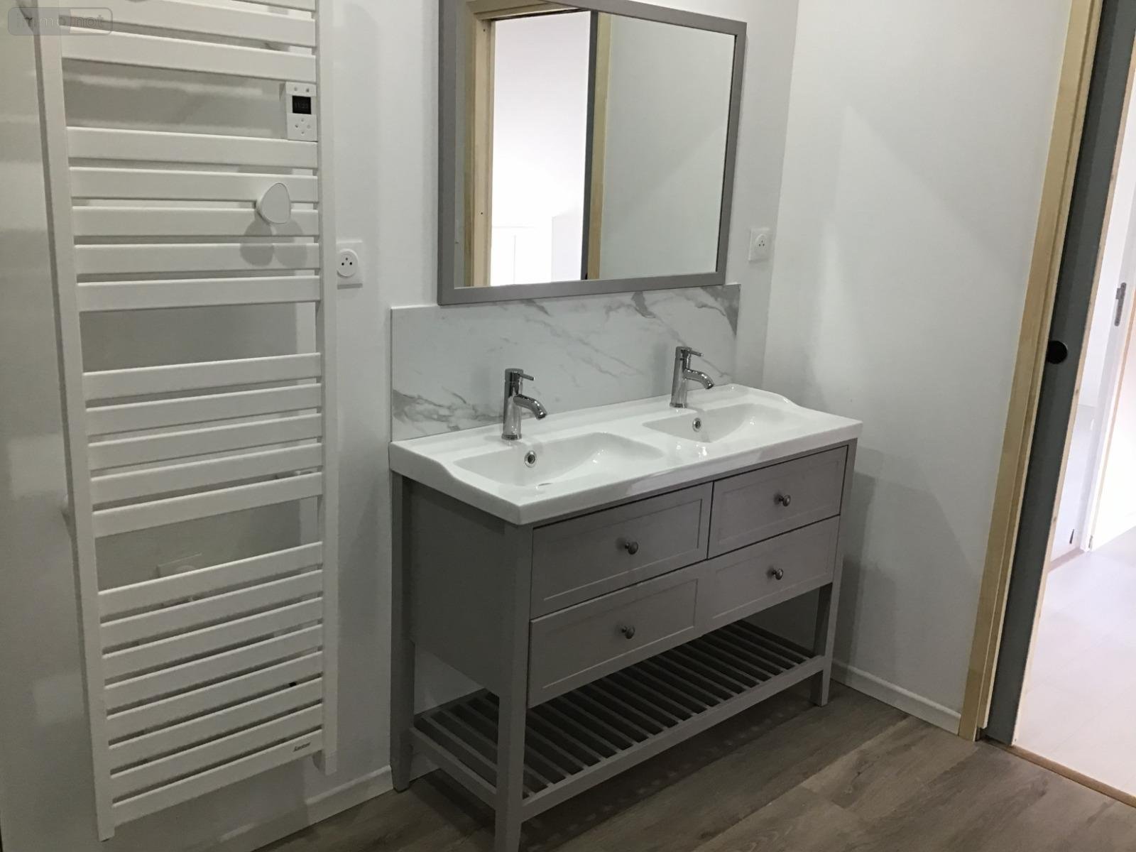 - à l'étage mansardé : palier, trois chambres dont 2 plus petites, salle d'eau avec meuble double vasques, miroir, sèche-serviettes, douche, wc suspendu.