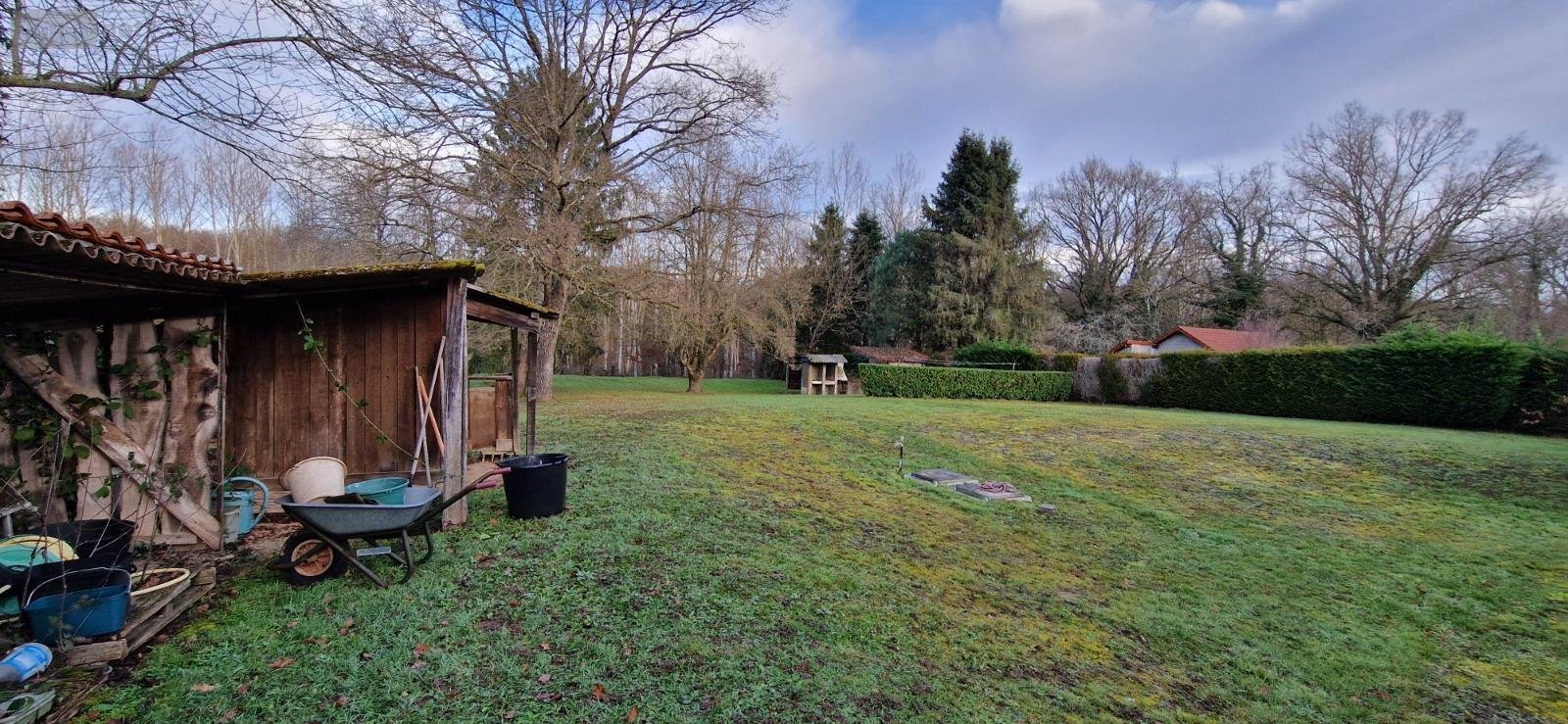 La maison, à rafraichir, est entourée de verdure et de bois.