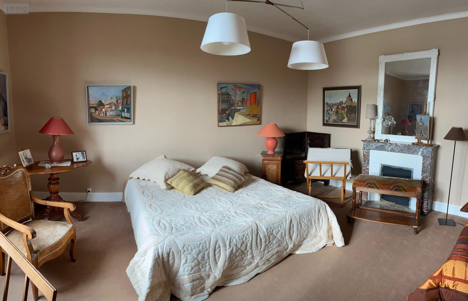 . au premier étage : quatre chambres dont une avec cabinet de toilettes, une avec cheminée et une avec placard, penderie et une salle de bains avec wc