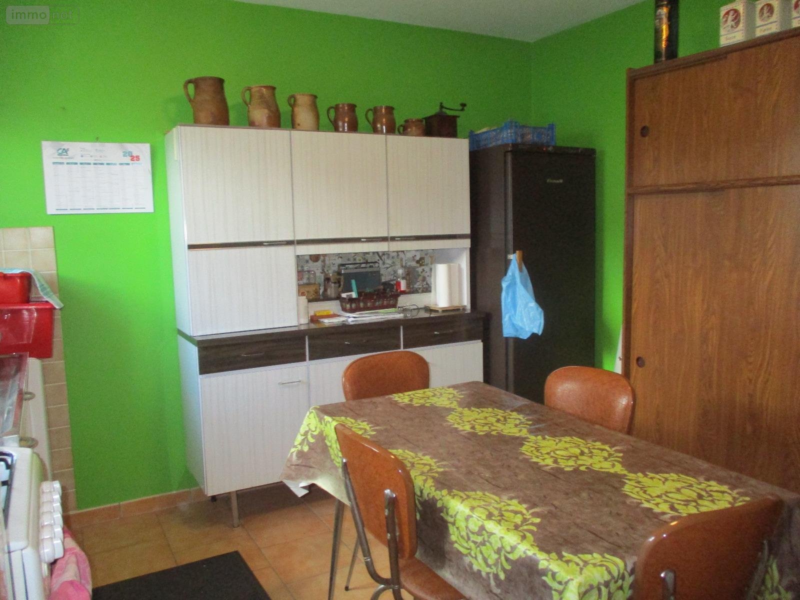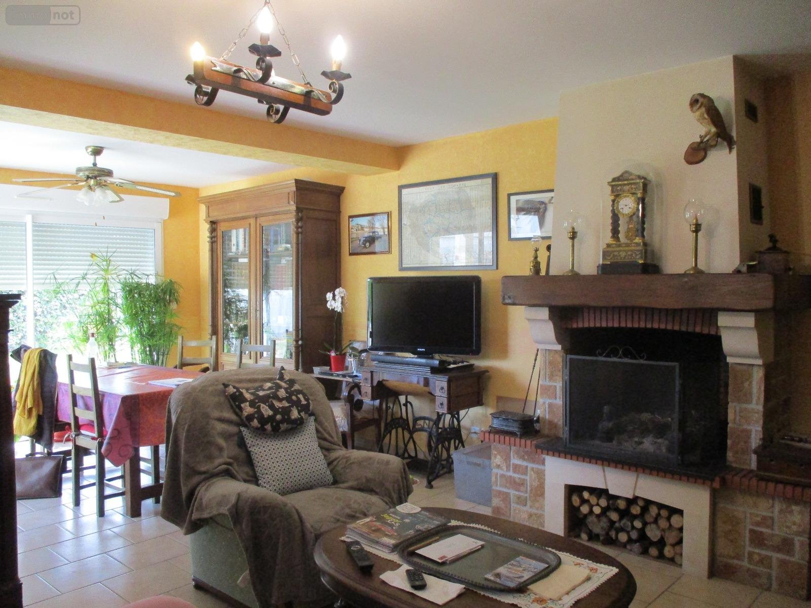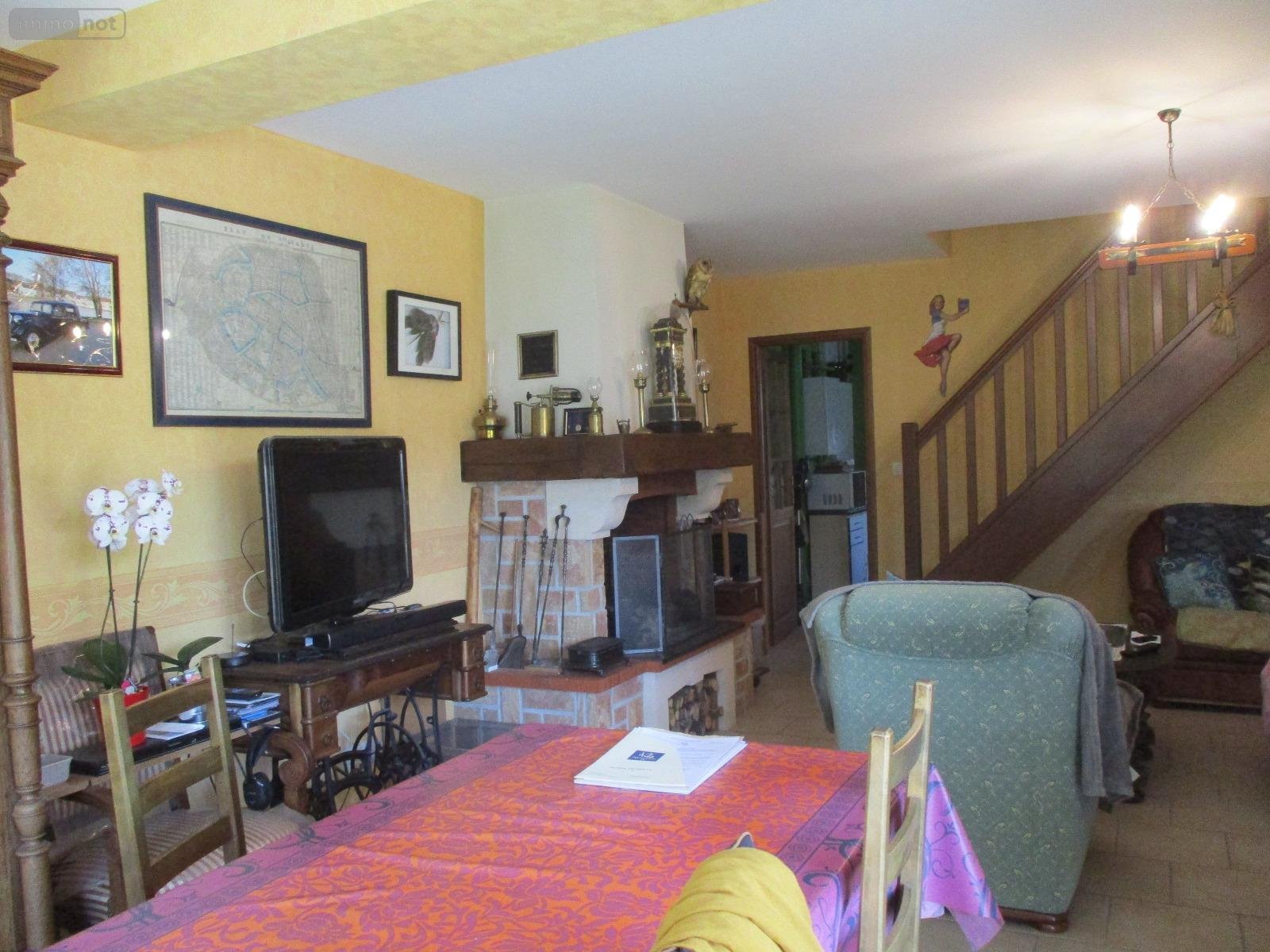 - au rez-de-chaussée : entrée sur séjour-salon avec escalier accès étage et cheminée foyer ouvert, cuisine aménagée ouverte, cellier-cuisine d'été, 2 chambres, salle d'eau, wc.