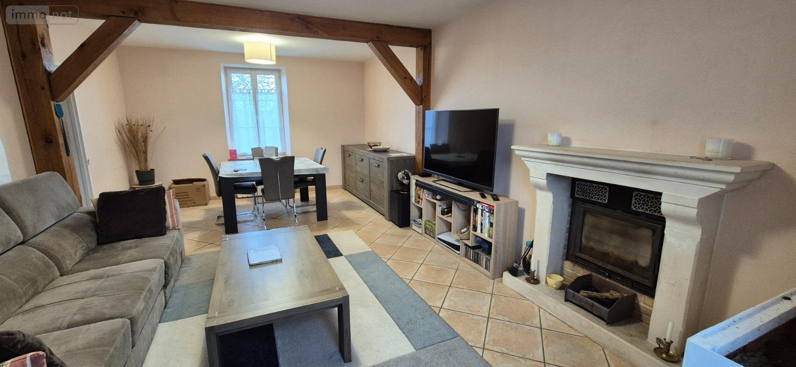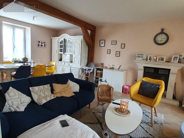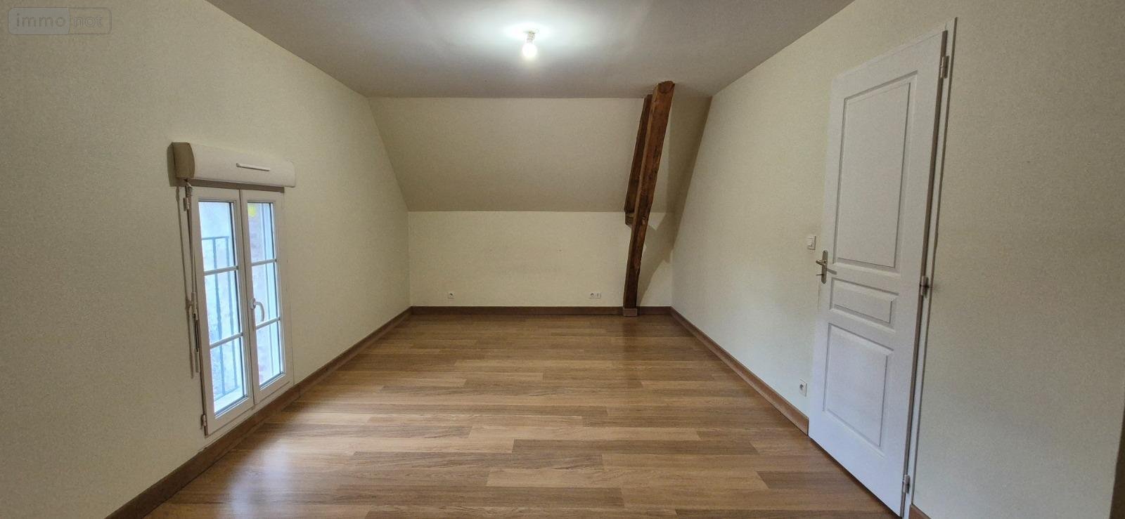 Maison à louer à Cormes dans la Sarthe (72) comprenant : entrée 6m², séjour - salon avec cheminée insert 24.5m², cuisine 9m², chambre 12m², salle de bains, WC. A l'étage : dégagement, deux grandes chambres 18.5m² et 17m² carrez (22.5m² et 20.5m² au sol), salle d'eau, WC indépendants.