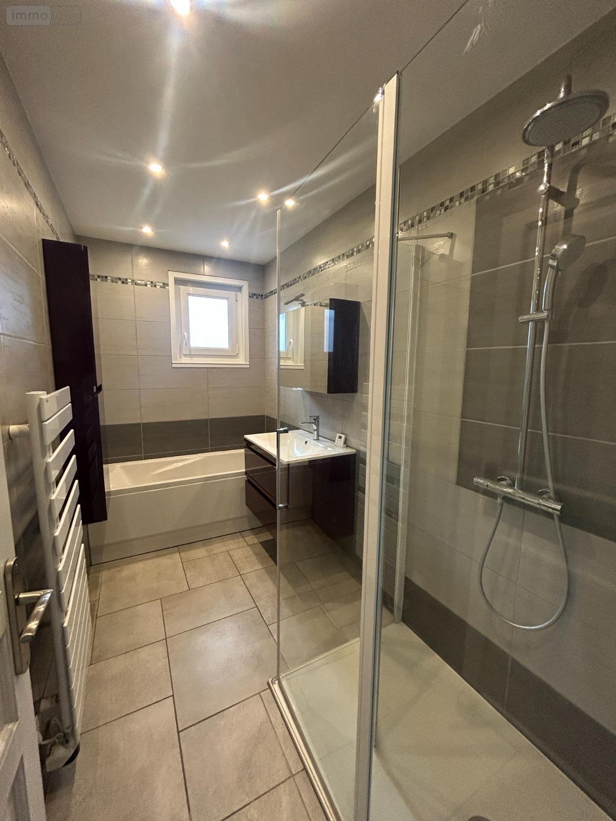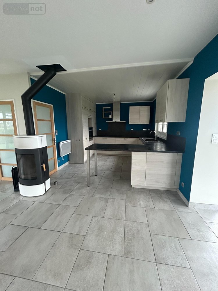 Belle Entrée avec placard de rangement, grand séjour/salon de plus de 44 m² avec pôele à bois ouvert sur cuisine équipée et aménagée de marque Schmidt, couloir dégagement, 3 chambres, dont 2 avec dressing de haute qualité (Schmidt et meuble Devin), salle de bains complète avec douche et baignoire, wc séparé.