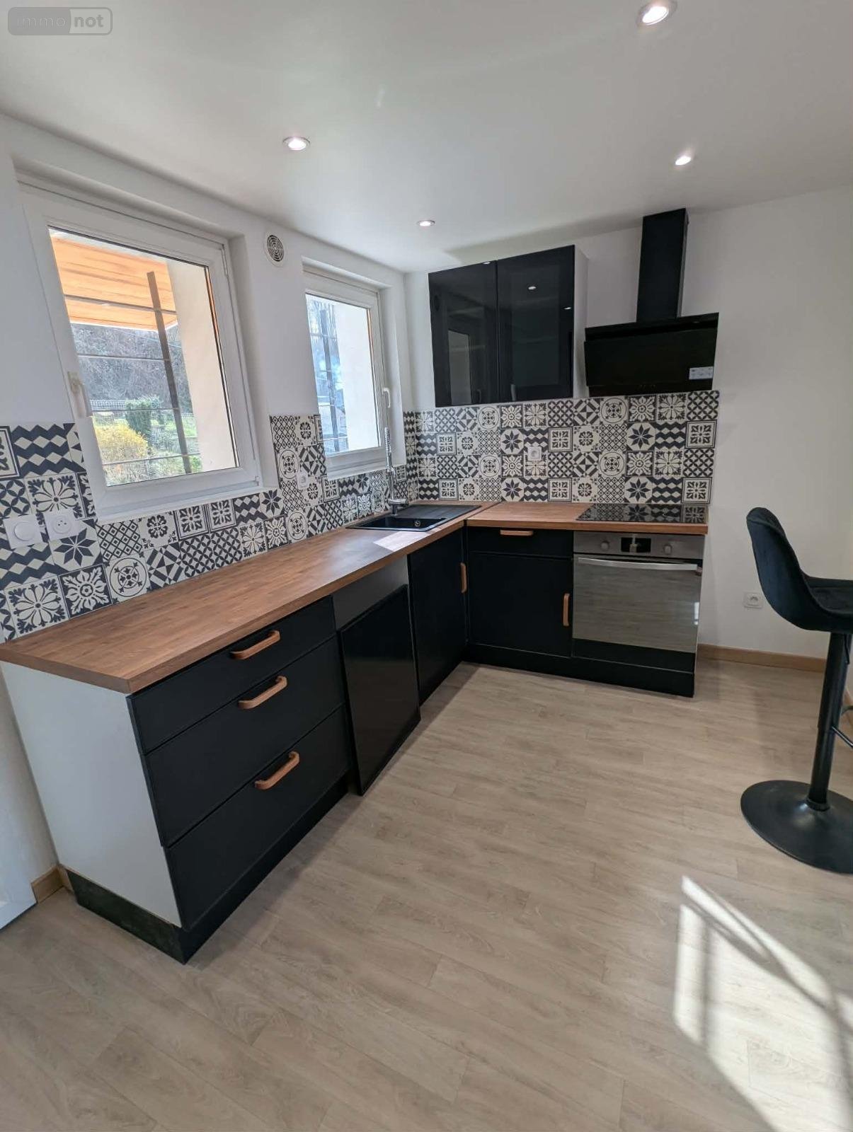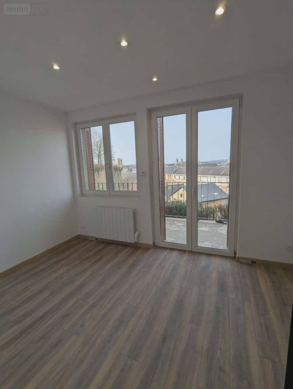 Bénéficiant d'une vue panoramique sur le centre-ville de Sedan, son château et Saint-Charles...ce pavillon des années 60 mitoyen d'un côté a été entièrement rénové et modernisé. Il se compose d'une cuisine ouverte sur le séjour, d'un salon indépendant, de deux chambres, d'une salle d'eau et WC, il est élevé sur un sous-sol complet. Balcon accessible par le salon et séjour et terrain de 419m². Convecteurs. TF: 2200€.