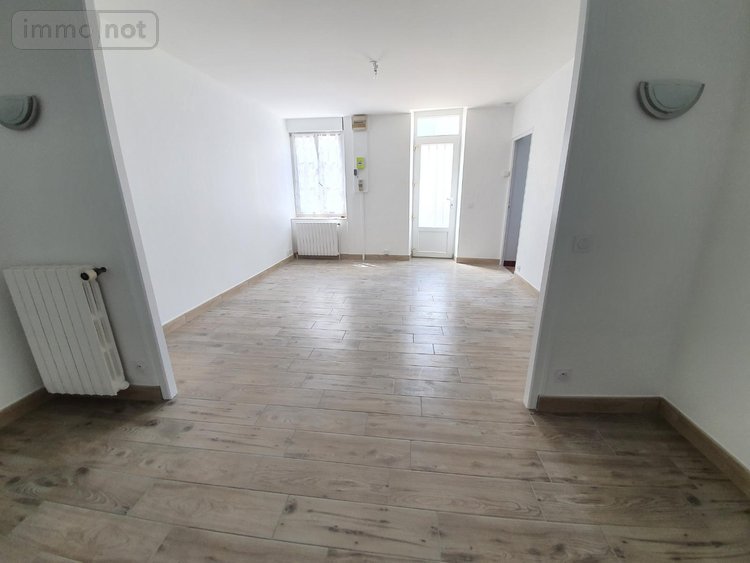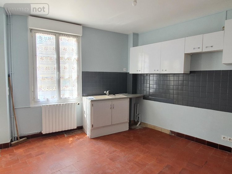 Maison de ville à louer dans le centre bourg de Cormes dans la Sarthe (72), comprenant : séjour-salon 22m², cuisine 12m², salle d'eau, WC indépendants. A l'étage : deux chambres 9.8m² et 22.5m², WC indépendants.