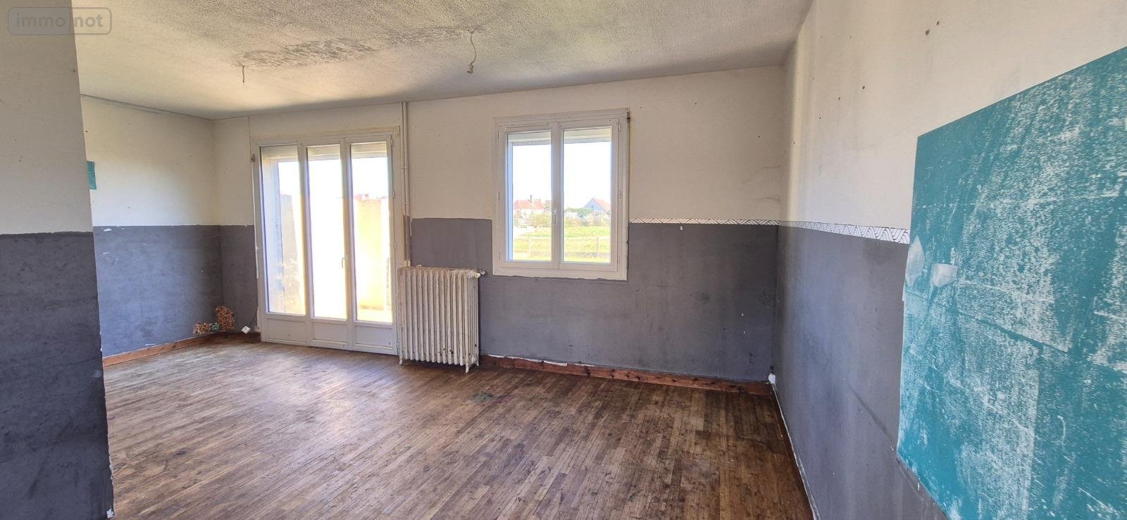 Maison de ville à vendre à La-Ferté-Bernard dans la Sarthe (72) comprenant : entrée, séjour ouvert sur cuisine 27.5m², WC indépendants. A l'étage : trois chambres de 9.5m², salle de bains.