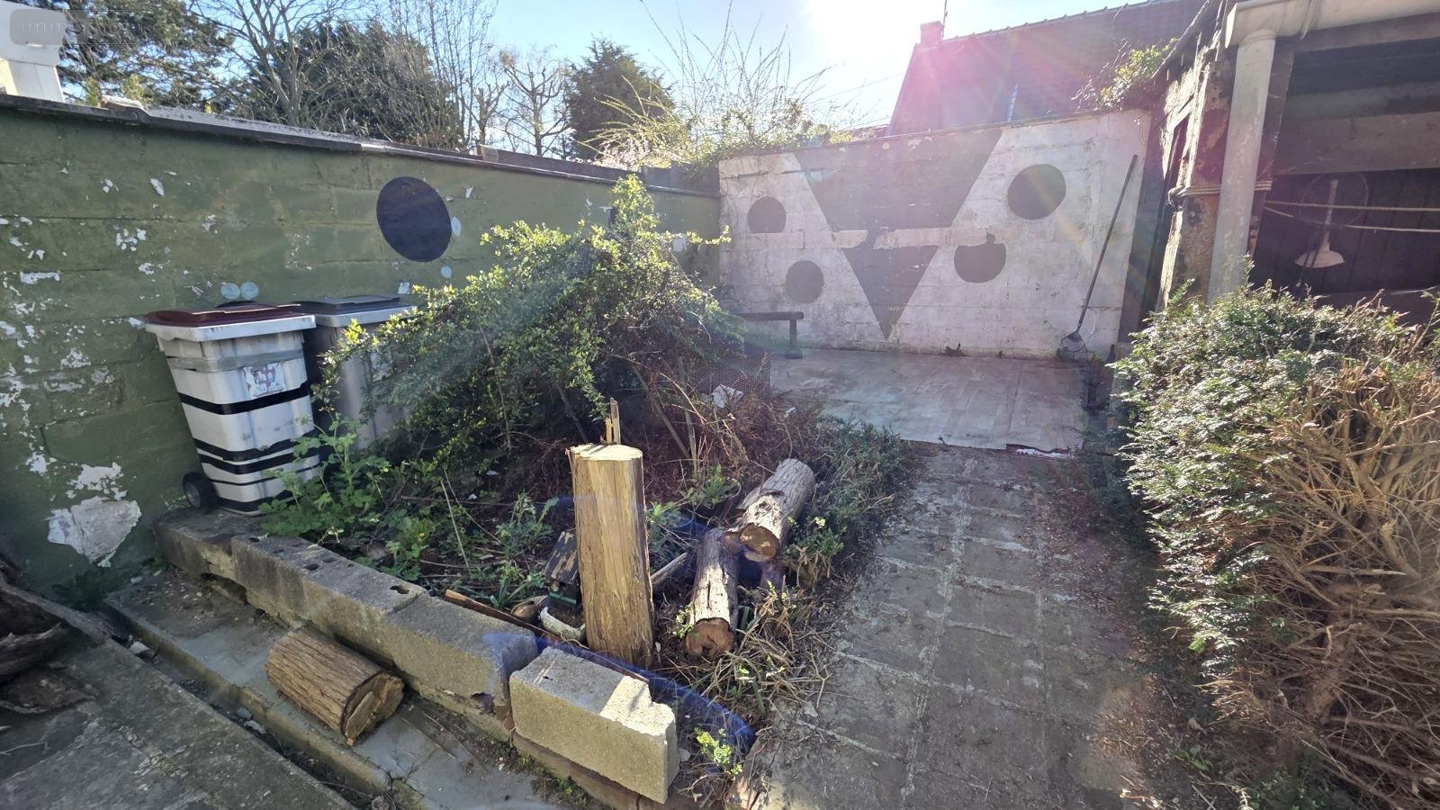 Aux étages: un grand pallier et deux Chambres. Un jardin bien exposé, une terrasse, et un carport (possibilité d'un garage) viennent compléter ce bien à fort potentiel.