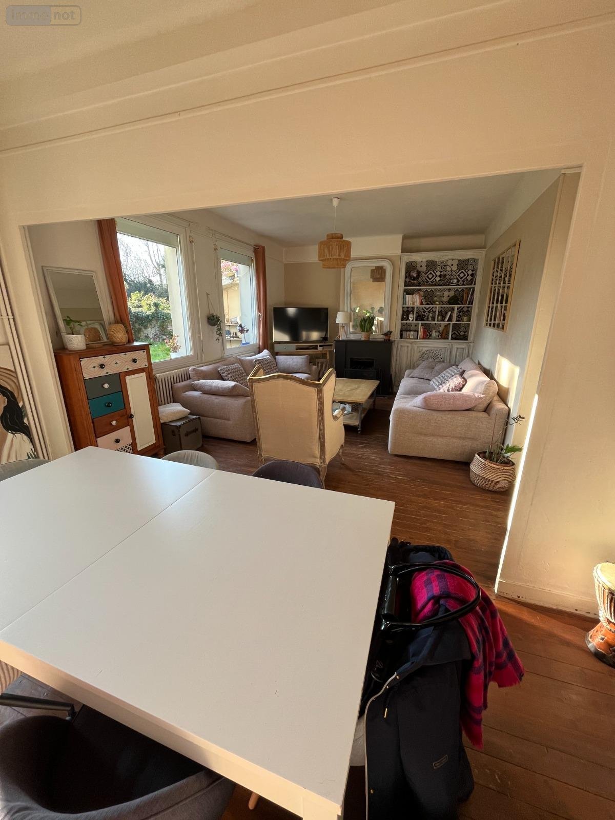 - au rez-de-chaussée : entrée, magnifique séjour-salon baigné de soleil avec accès au jardin et cheminée, cuisine aménagée et équipée, ancien garage servant de pièce de stockage, WC ;