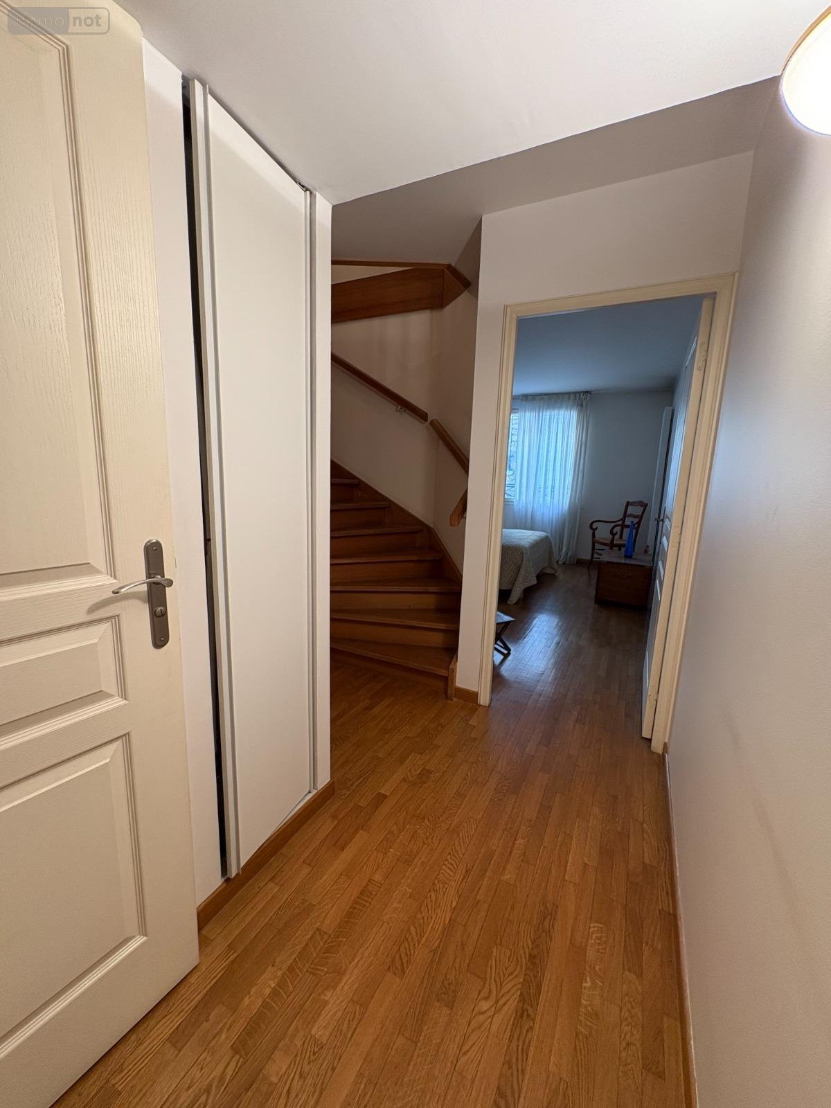 - Au rez-de-jardin, une chambre avec placards, salle de bains avec wc, rangements, bureau/chambre avec placards.