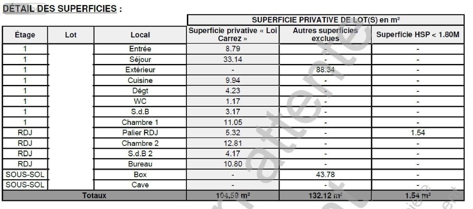 Surfaces dans l'annonce.