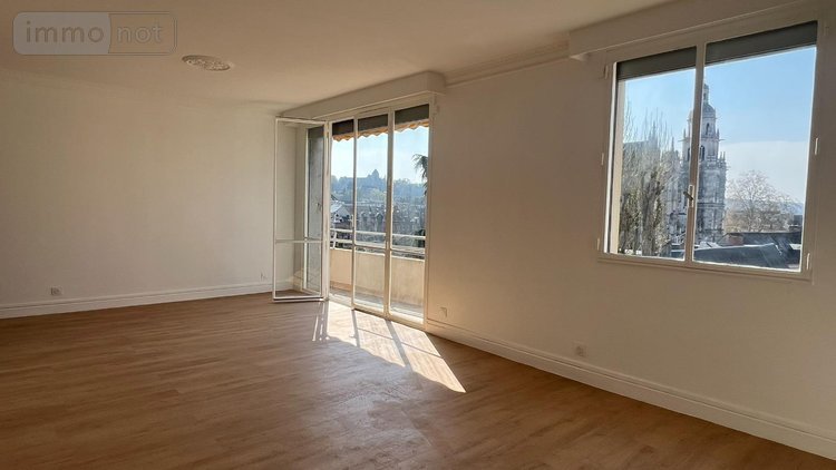 Une entrée desservant: un vaste salon-séjour lumineux ouvrant sur un balcon avec vue sur la cathédrale, une cuisine aménagée et équipée, deux chambres dont une avec placard et une avec accès au balcon, une salle d'eau et un WC séparé.