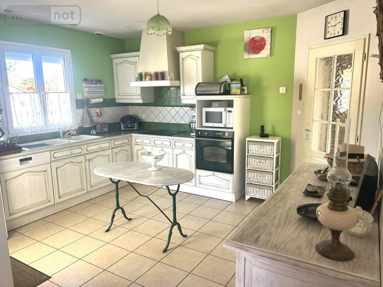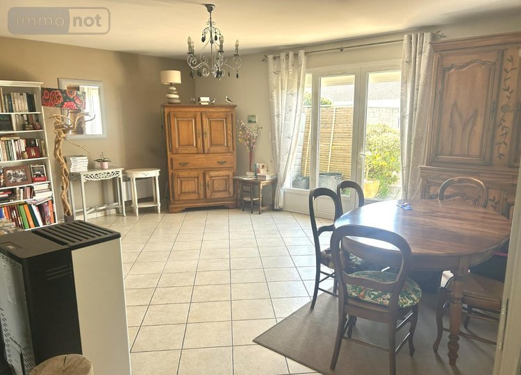 Jolie maison à vendre à LE CHATEAU D'OLERON en Charente-Maritime (17), dans lieu calme et non isolé, récente de plain-pied comprenant : une cuisine aménagée et équipée ouverte sur séjour-salon (poêle à granules), couloir desservant 3 chambres, une salle d'eau, un w.c. Un garage. Le tout dans un jardin d'agrément arboré et clos sur 364 m2.