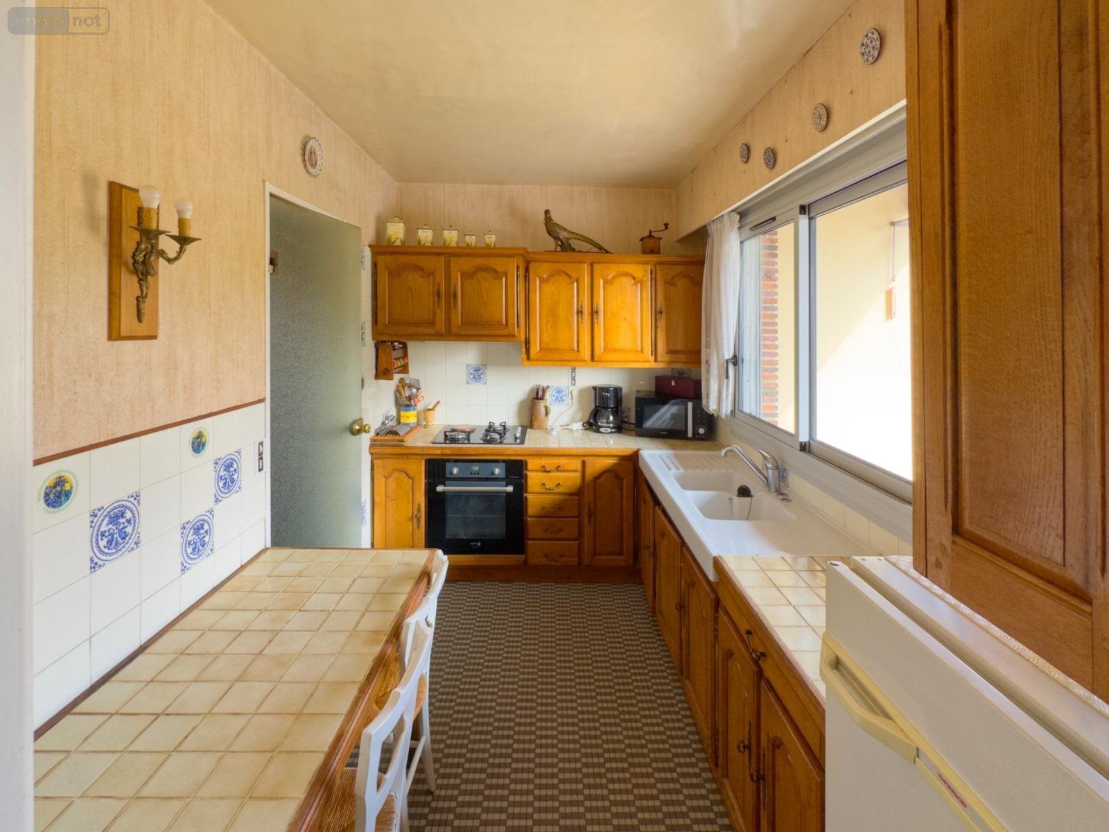 Au rez-de-chaussée surélevé : Entrée, cuisine aménagée et équipée, séjour-salon avec cheminée foyer ouvert, quatre chambres, une salle d'eau, une salle de bains, wc, dégagement avec placards.