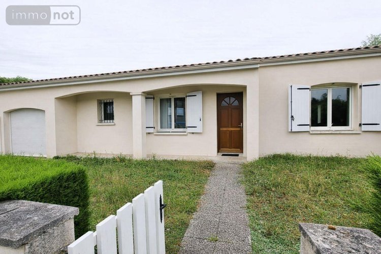 Maison à vendre Jonzac en Charente-Maritime (17), centre ville à pied, comprenant : 5 pièces : bureau, séjour-salon, cuisine aménagée, 2 chambres, salle d'eau, wc, cellier, grand garage. Chauffage urbain.