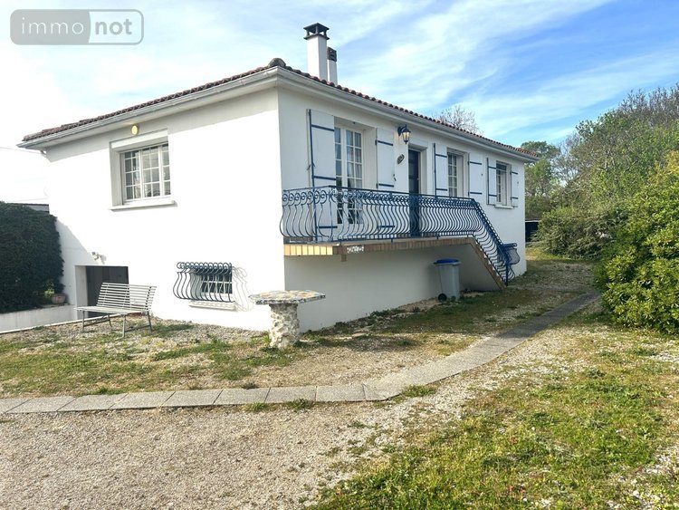 Jolie maison à vendre à BOURCEFRANC-LE-CHAPUS en Charente-Maritime (17), proche du centre-ville, non mitoyenne en rez de chaussée surélevé comprenant : couloir d'entrée en L, cuisine aménagée, séjour-salon (balcon) avec cheminée, 3 chambres, une salle d'eau, un w.c. Sous-sol semi-enterré composé d'une cuisine d'été avec partie réserve, une cave à vins (adoucisseur), grand garage. Parkings voitures. Le tout dans un jardin clos sur 1602 m2.