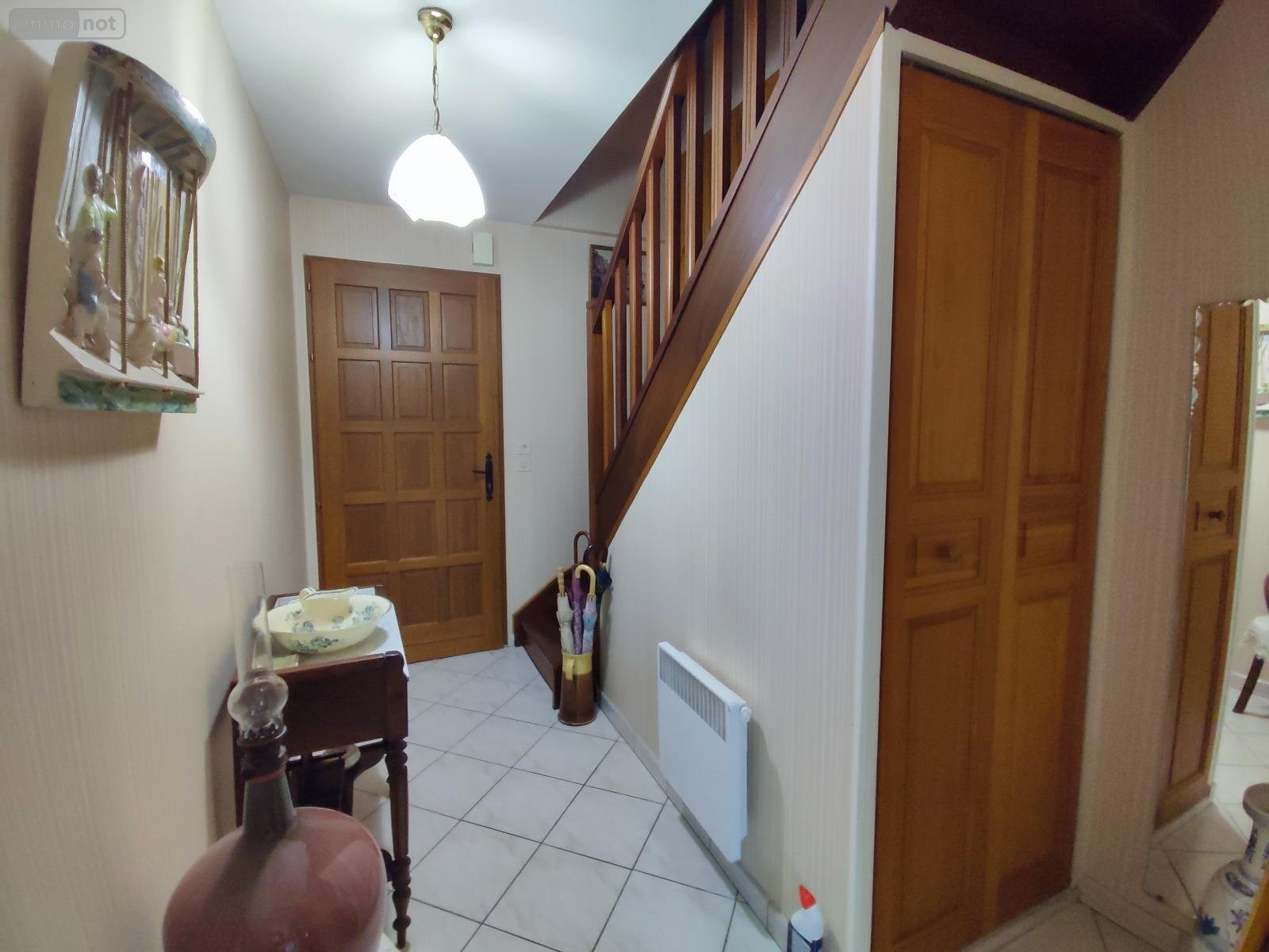 A l'étage : palier desservant 3 chambres, salle de bains avec wc.