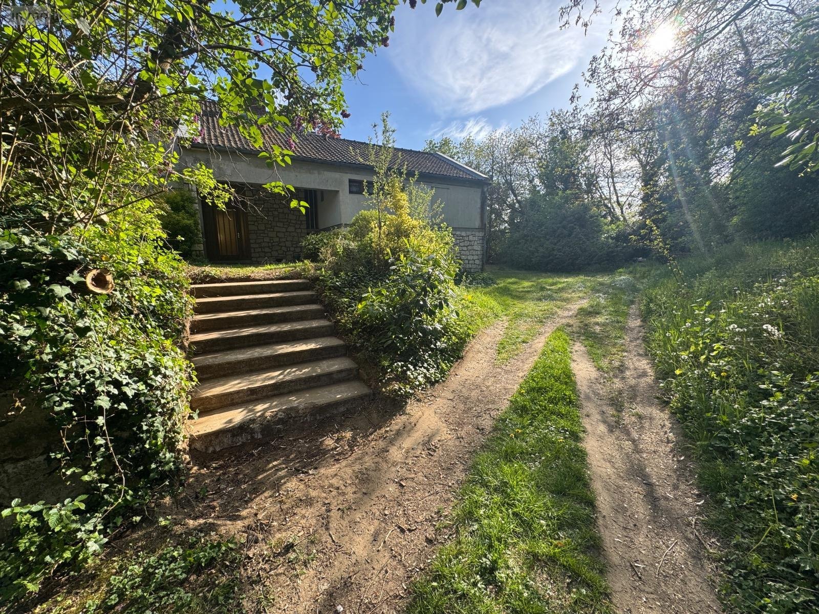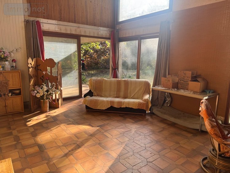 Maison d'architecte à vendre Béthisy-Saint-Pierre dans l'Oise (60), à l'cart du village sur un grand terrain en bordure de la fort de COMPIEGNE(60) au calme absolu dans une impasse comprenant une partie jour avec très grand séjour cathédrale avec tres grande et haute baie vitrée( 7 metres) avec cheminée insert, salle à manger, cuisine équipée avec ilot central, partie nuit en demi -etage inférieur comprenant 3 chambres dont une avec salle d'eau.