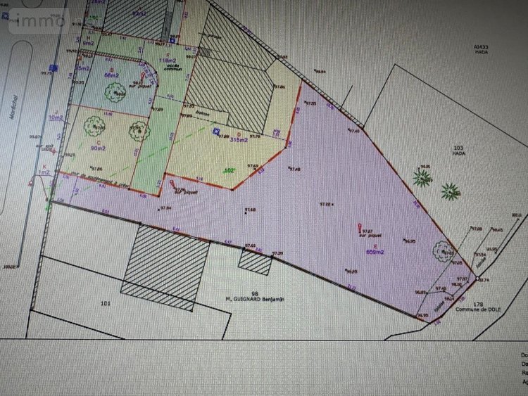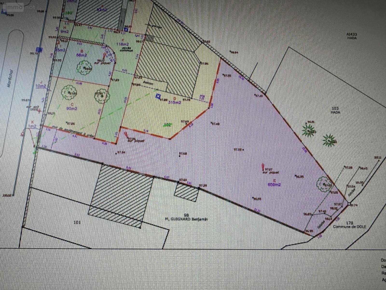 Dole , terrain , libre constructeur , non viabilisé , accès à créer, secteur Epenotte, surface globale 660 m² , (matérialisé en violet sur le plan